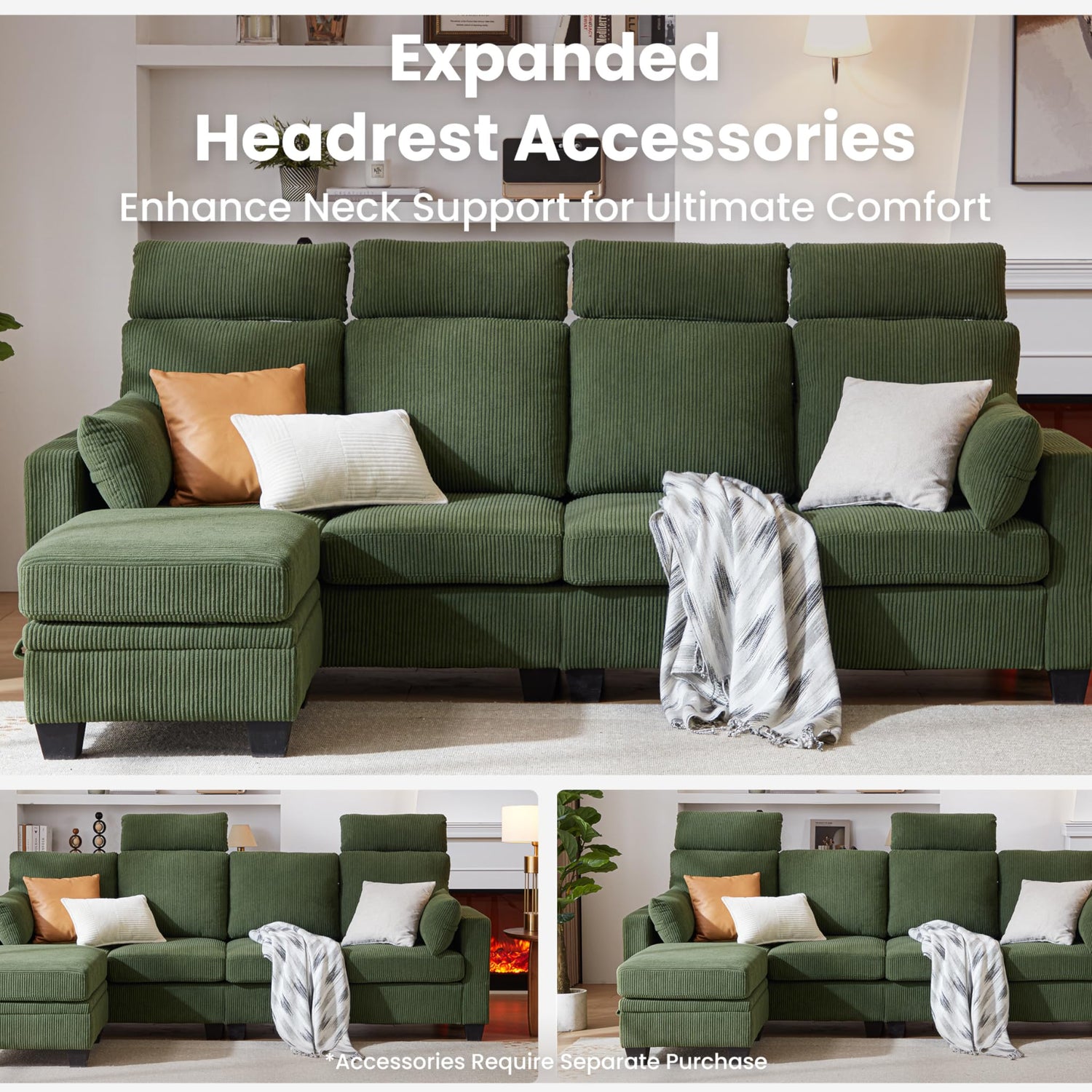 - 【Robust Construction - Built for Daily Use】Our sectional sofa features a durable metal and hardwood frame designed to last. The pet-friendly corduroy fabric is scratch-resistant and easy to clean, making it perfect for households with pets. This sofa is built to withstand daily wear and tear while maintaining its elegant appearance.