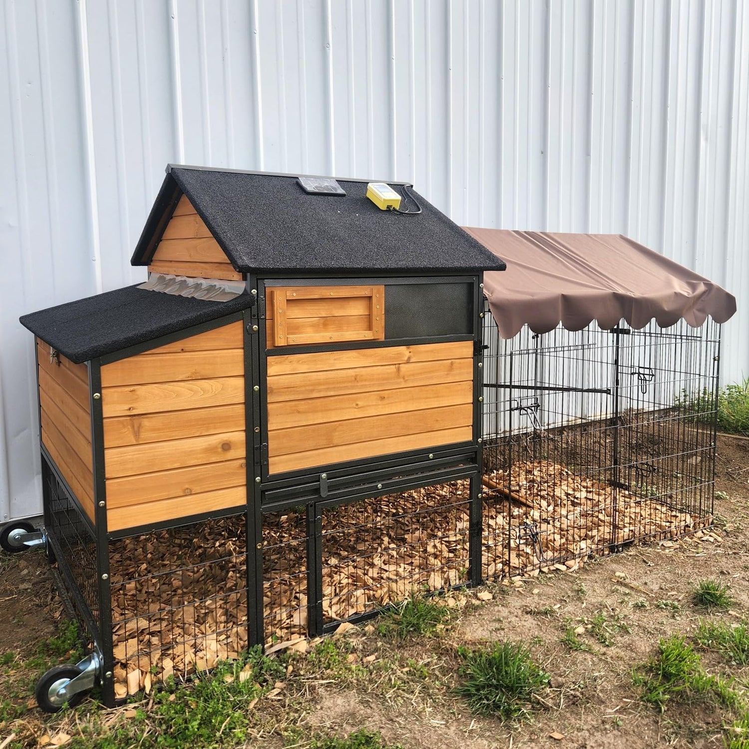 - 【Unique Chicken Coops】 Solid fir wood combine with all-steel frame keep the chicken coop more strong.Asphalt roof for nesting box and sleep area provide a dry and comfortable space.