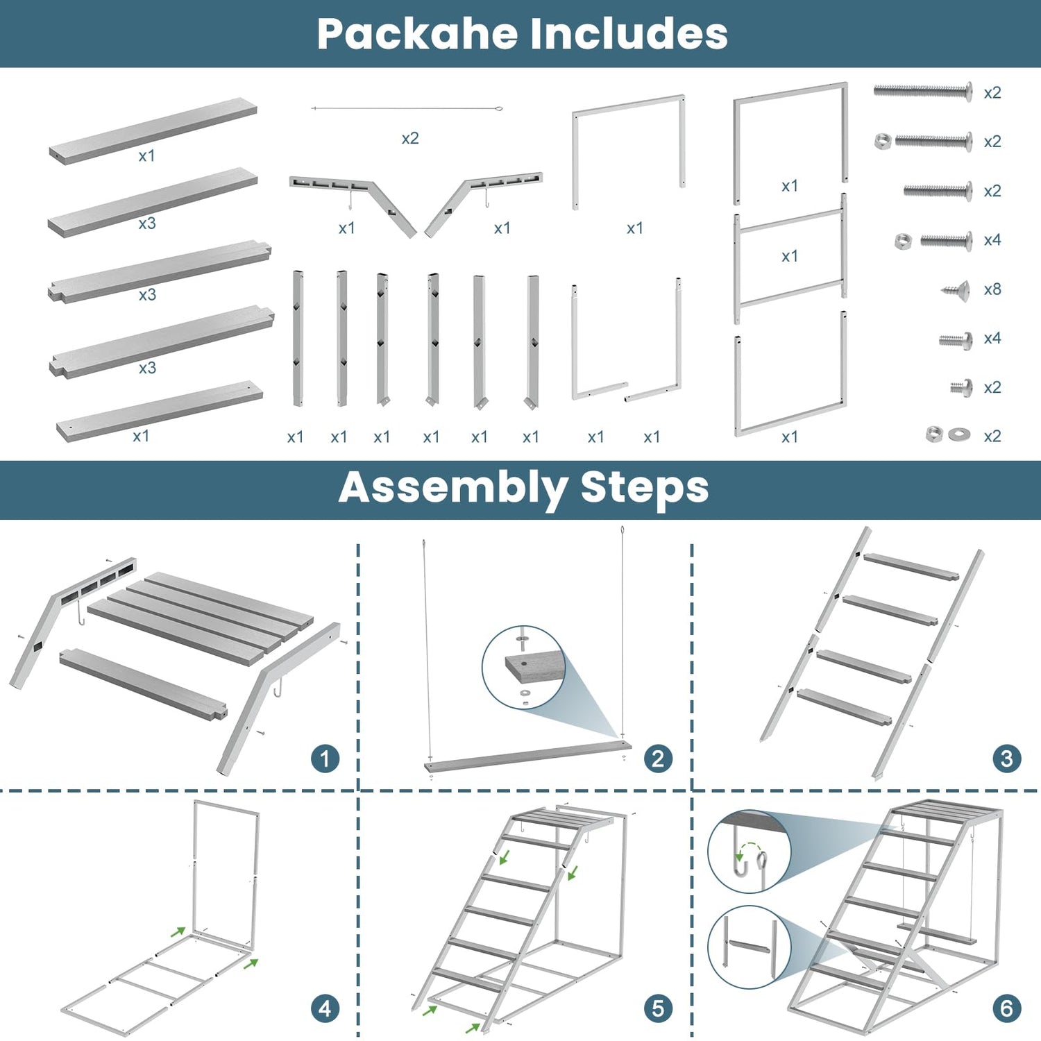 - Funny and Engaging Chicken Toys: With one platform, one long swing and one side ladder providing numerous perches, many chickens or your pets, such as: cats, rabbits, birds can easily share and play together. Add the chicken coop toys to your coop or in front of the countyard for their entertainment, not only allowing them a happier space but encouraging healthier behavior and healthier physical well-being