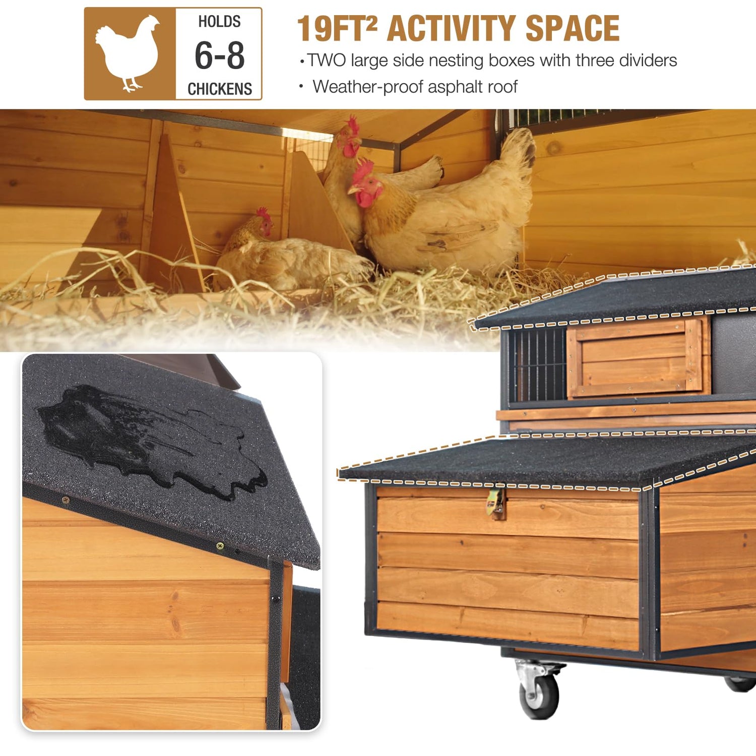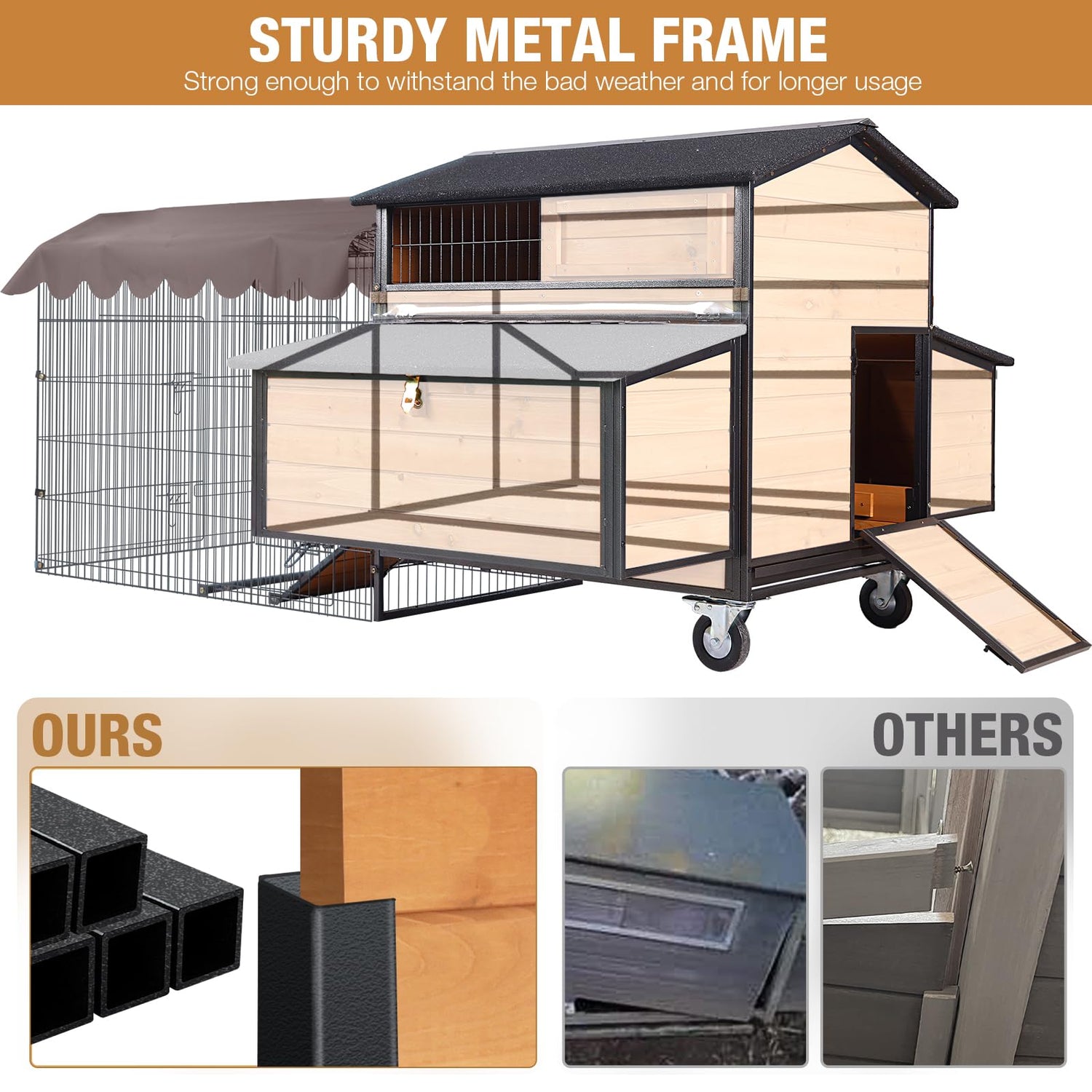 Chicken Coop Large Wooden Chicken Tractor for 6–8 Chickens, Outdoor Hen House with Metal Run Poultry Cage-Upgraded All Metal Frame