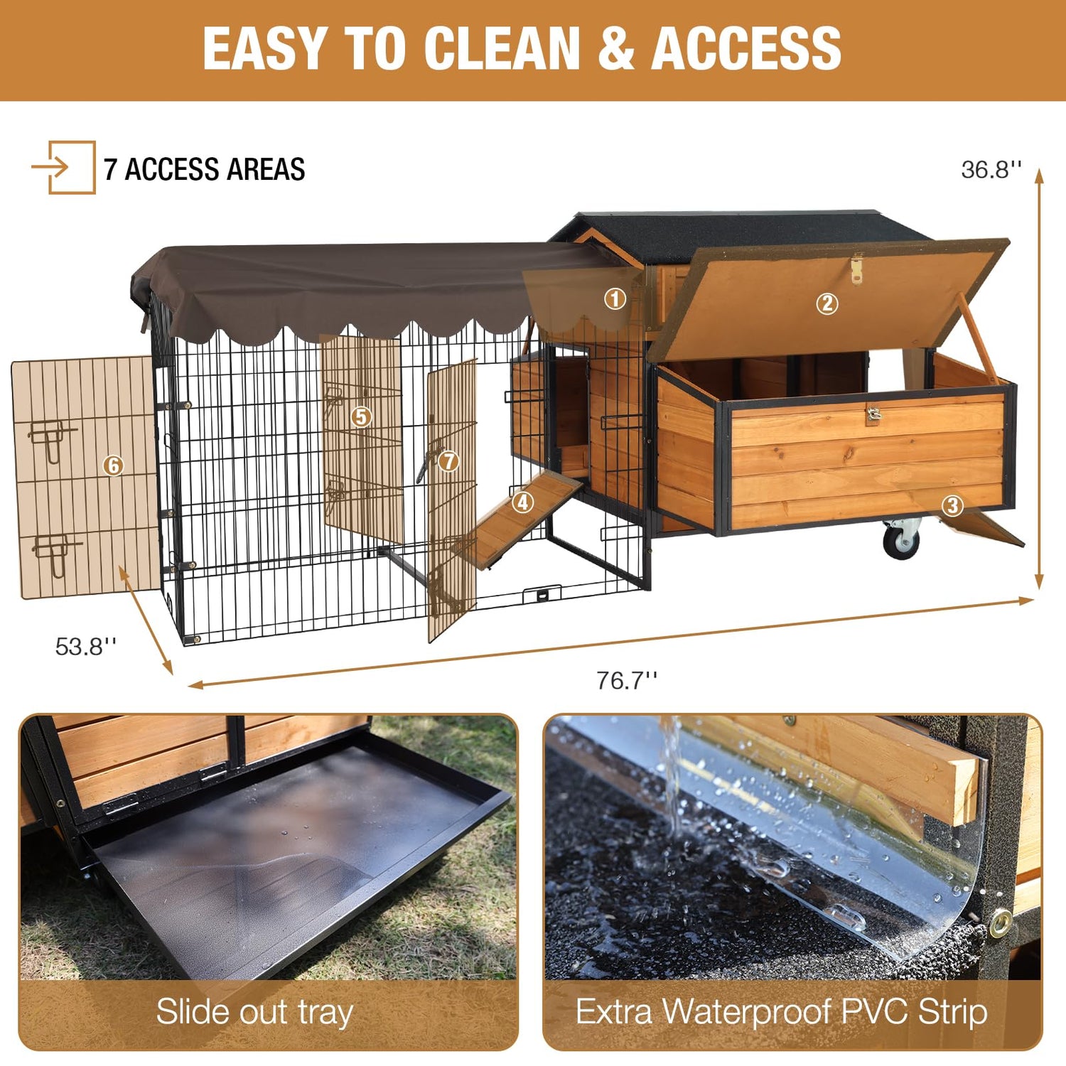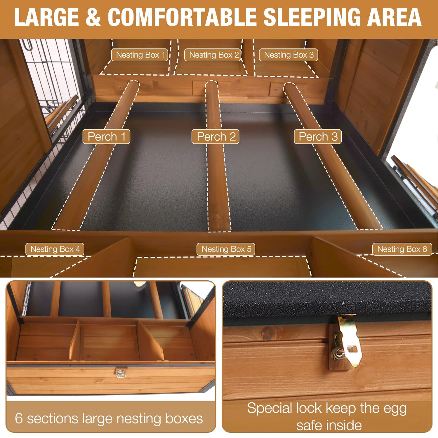 - Convenient Access with 7 Doors & 2 Windows: With 7 access doors and 2 large viewing windows, you can easily collect eggs, feed your chickens, and clean the coop without any hassle, ensuring a stress-free experience for both you and your hens.