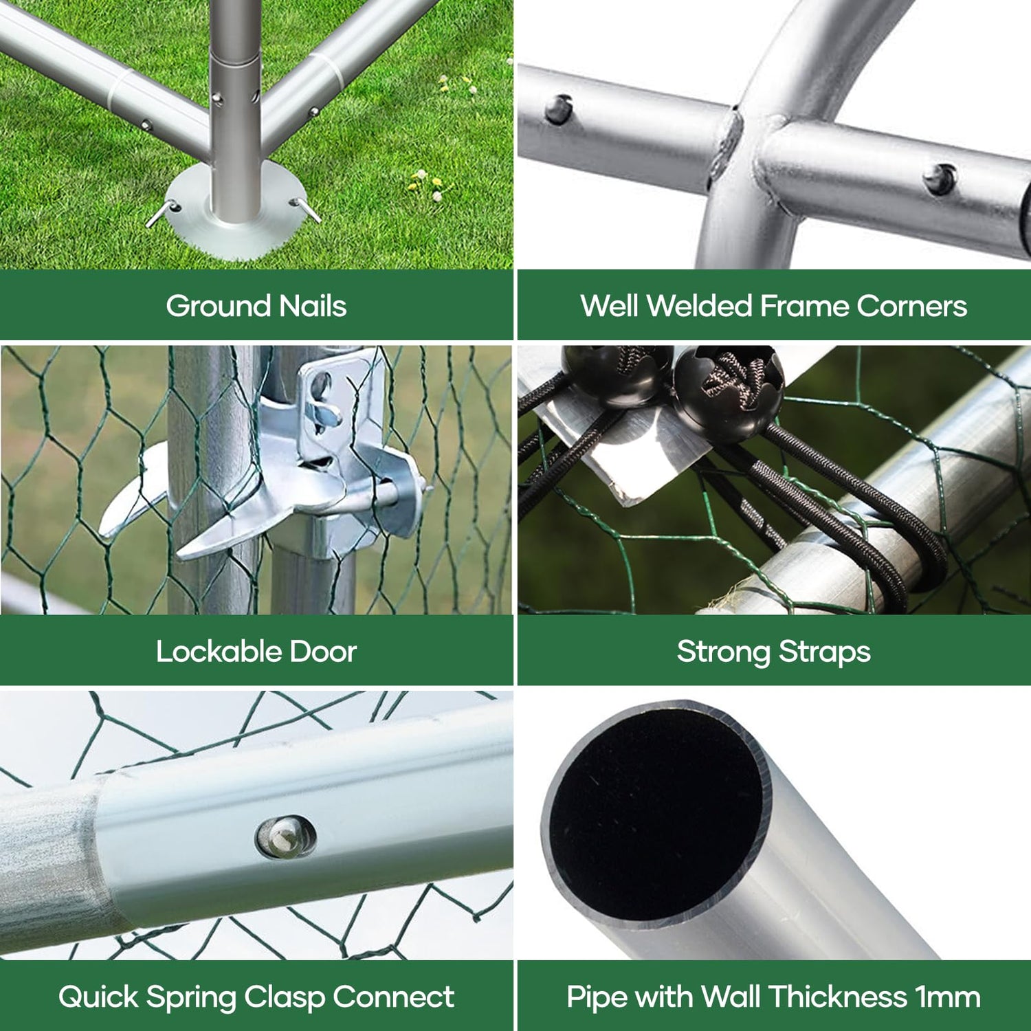 - 🦆【Durable Steel Structure】Our heavy-duty metal chicken coop is built with a high-quality steel frame, ensuring long-lasting durability. Designed for long-term use, the coop features additional support columns and triangular braces for enhanced stability. The stainless steel construction, combined with galvanizing technology, offers excellent resistance to rust and wear.