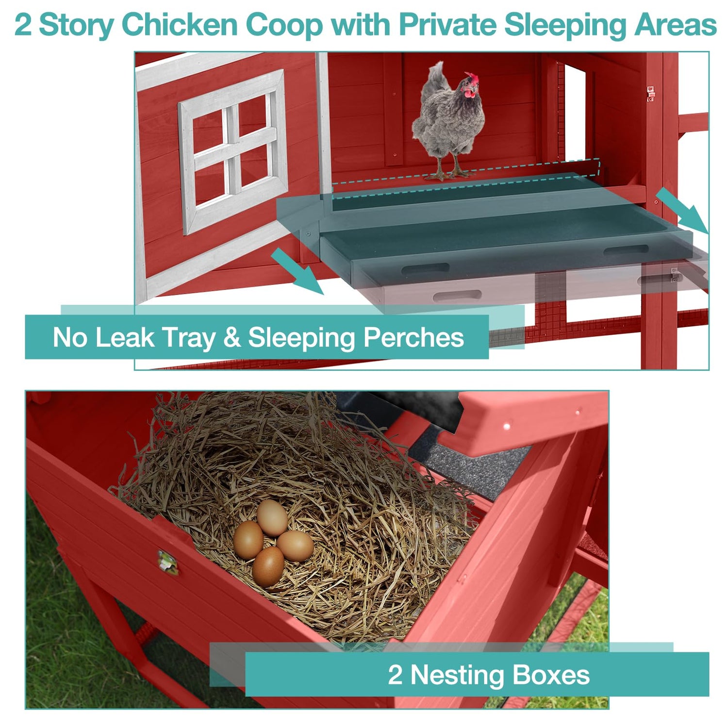 Chicken Coop, Mobile Chicken House with with Wheels, Outdoor Hen House Poultry Cage with Nesting Box, Leakproof Pull Out Tray and UV-Resistant Roof,Rabbit Hutch Duck Coop (Red)