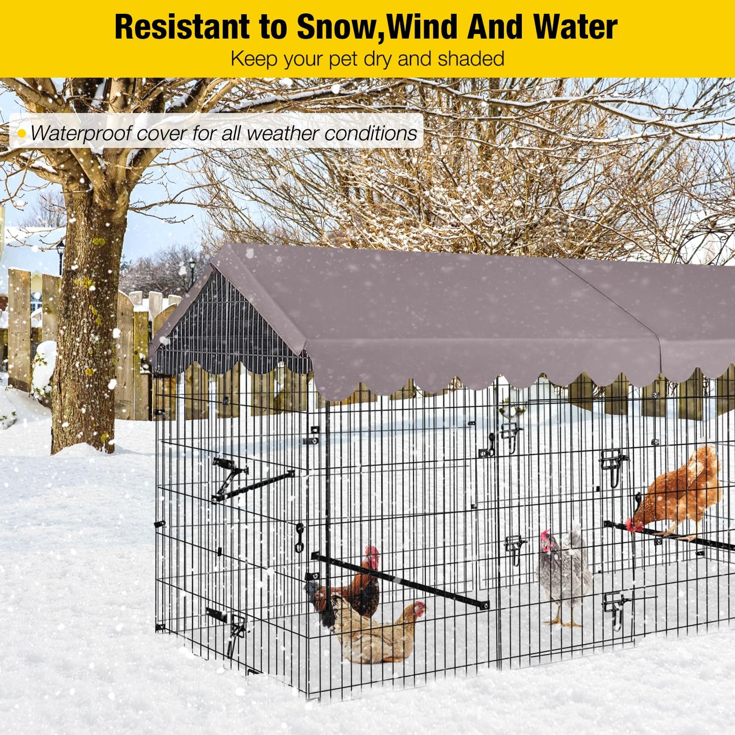 - Removable waterproof roof cover - Our covers are made of high-quality PE materials which can resistant to snow,wind and water,keep the animals dry and shaded.great for indoor and outdoor use.