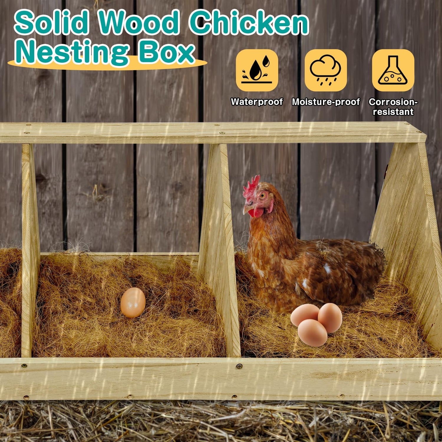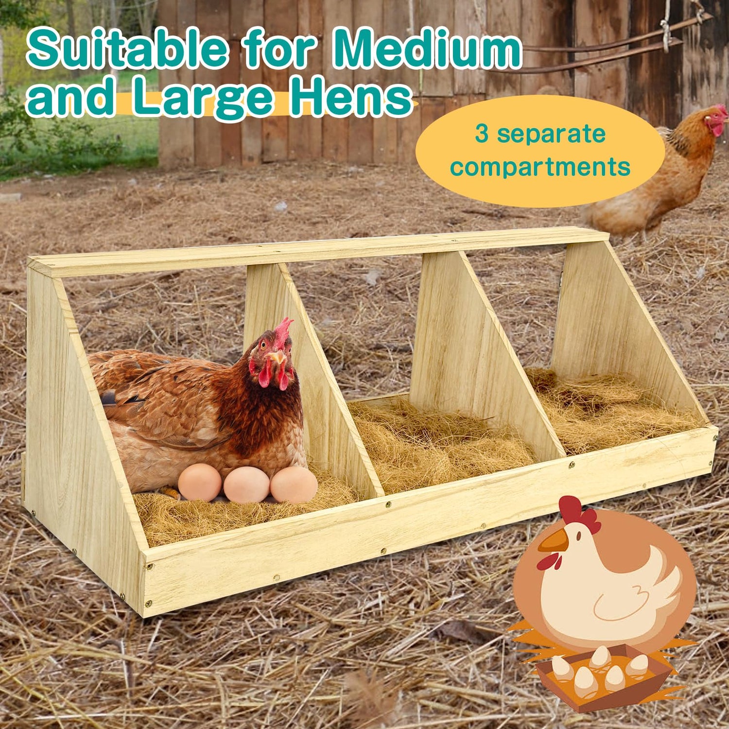 - All-Inclusive Solution: Our package includes everything you need for easy chicken keeping. Each set of the 3-compartment chicken laying box comes with 3 fake eggs, which help encourage hens to lay eggs in designated areas. Additionally, it includes 3 nest box pads for added comfort, eliminating the need for separate accessory purchases