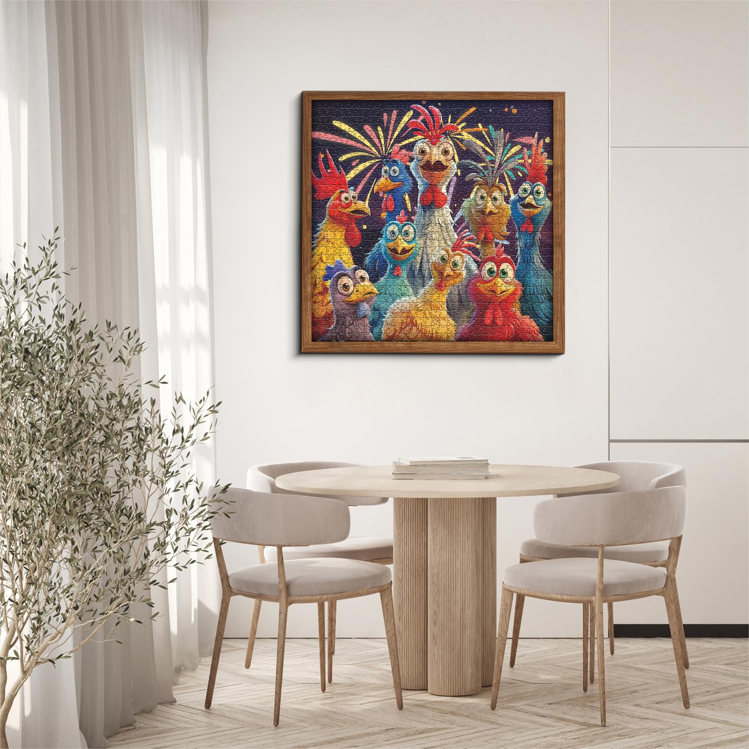 Chicken Puzzles for Adults 1000 Pieces, PICKFORU Happy Chicken Jigsaw Puzzle 1000 Pieces, Funny Rooster Hard Difficult Thanksgiving Puzzle as Wall Art