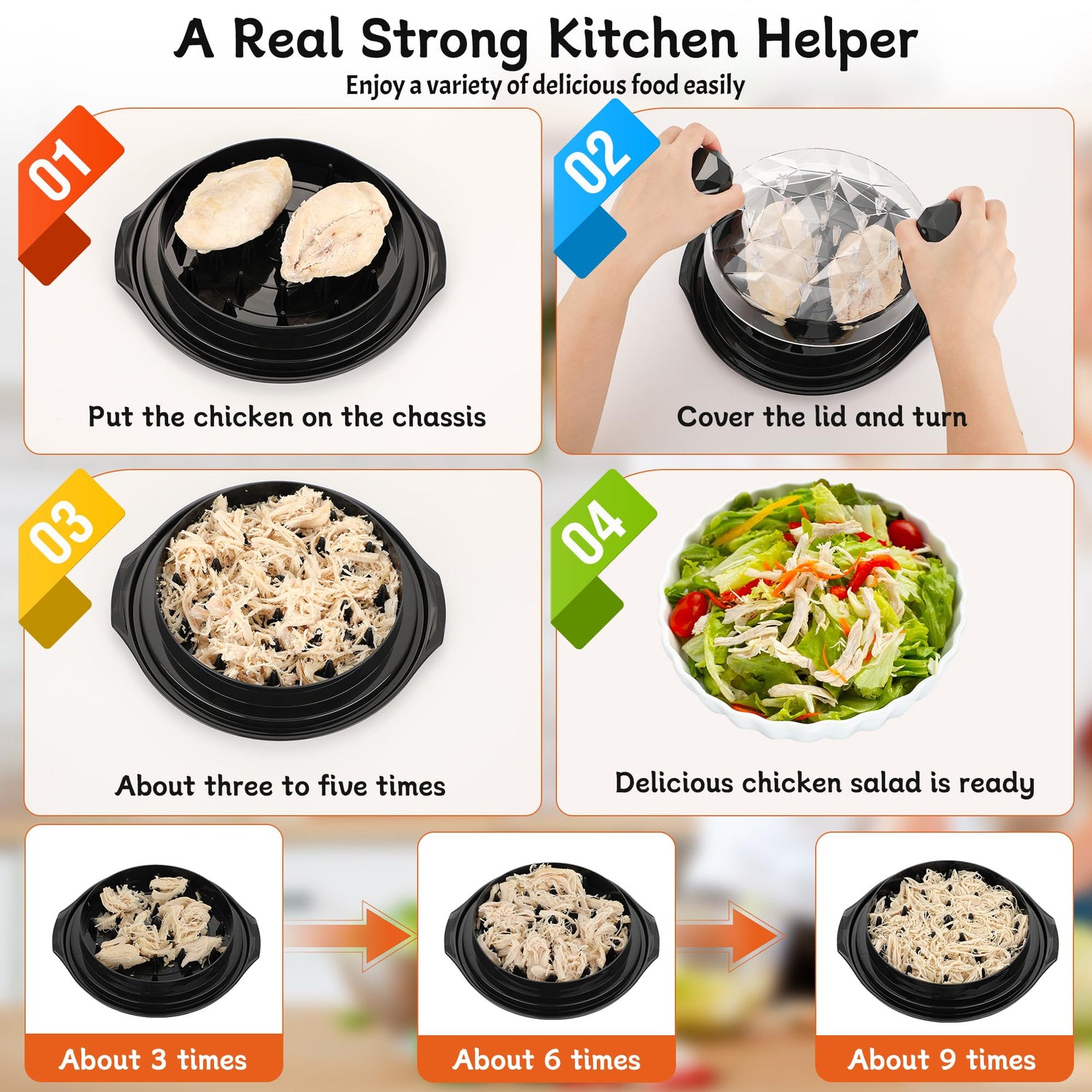 - 【Upgrade Chicken Shredder】This 10'' Pro meat and chicken shredder upgrade the inner shred structure and strong sharper spikes, more effective and saves time. This chicken shredder tool twist is applied with an ergonomic handle and an strong anti-slip rubber base for safe operation even in multiple times.The transparent design allows easy monitoring during shredding, ensuring you get your desired shredding results every time