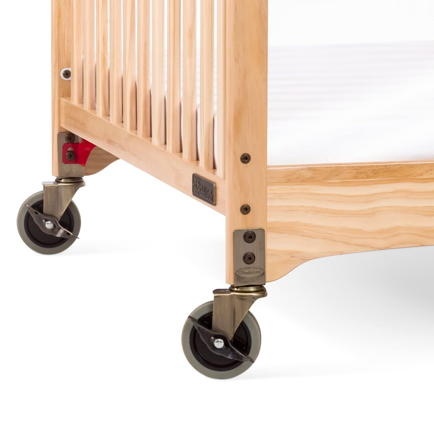 Child Craft Safe Haven Daycare Evacuation Wooden Compact Portable Crib with 4" Casters, Features Clearview End Panels, Durable Wood Construction, Easy Grib Handles, Fits Through Doorways (Natural)