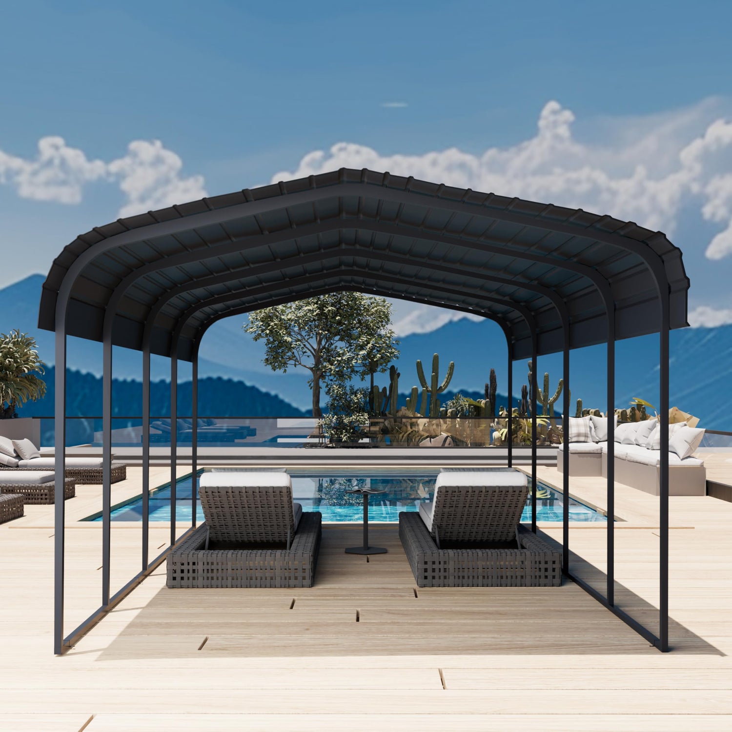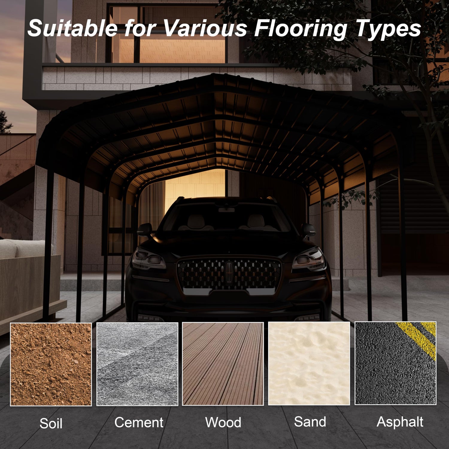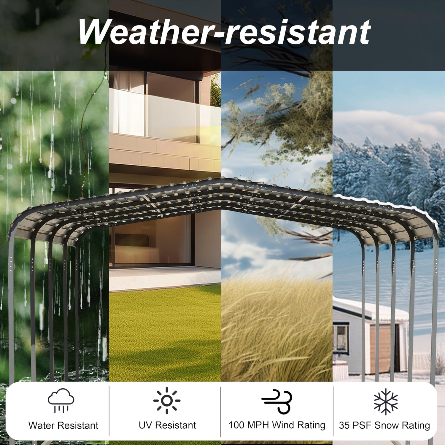 - 【Sturdy and Durable Metal Carport】Our carport features a thickened galvanized steel top and frame, ensuring a durable structure that resists rust over time. Special waterproof design on the top, along with rainproof tape, provides outstanding leak protection during rainy days. Soft edge rubber strips are installed along the edges of the steel panels, enhancing safety and preventing cuts while extending the lifespan of the carport.