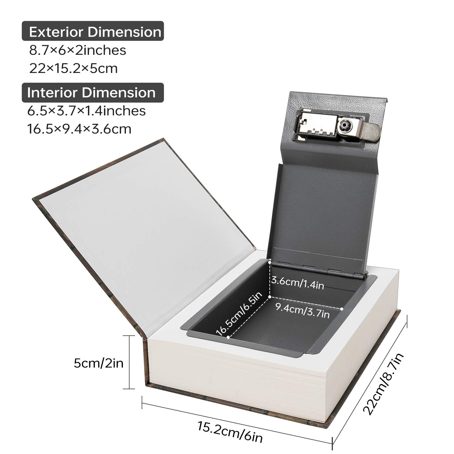 - UPDATE MATERIAL AND PORTABILITY: Made of great materials, the lock is made by zinc alloy, much sturdier and hard to break than the plastic ones. This book-like safe box is compact and lightweight enough so that can be slipped into your briefcase, backpack for business trip or personal travels