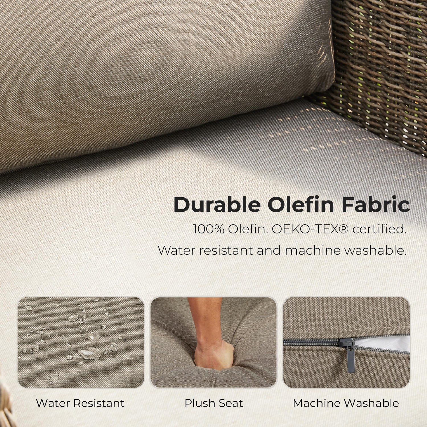 - Easy to Clean - The water-resistant 100% Olefin cushion covers are easy to maintain. Simply spot clean with mild soap and water for regular care, or machine wash on a cold cycle for deeper cleaning. For protection during harsh weather, store the cushions under cover temporarily.