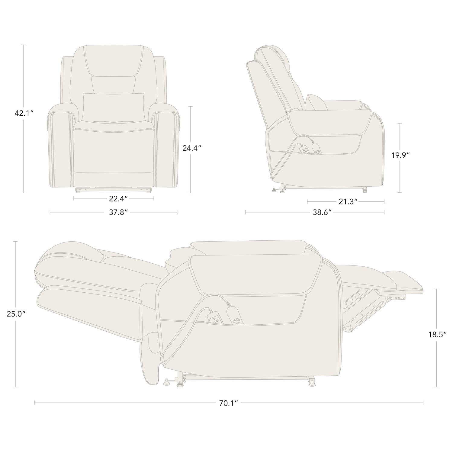 - Convenient Controller and Charging Ports: A hand-held remote allows you to independently adjust the footrest and backrest for custom relaxation. A built-in USB charging port enables easy charging of your mobile phone or tablet. The wired controller can be stored in both side storage pockets, which are easily accessible and large enough for your tablets or magazines.