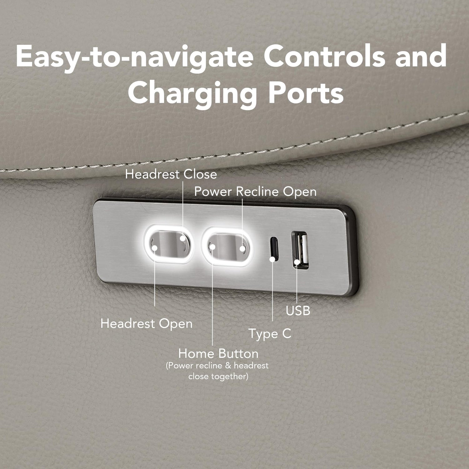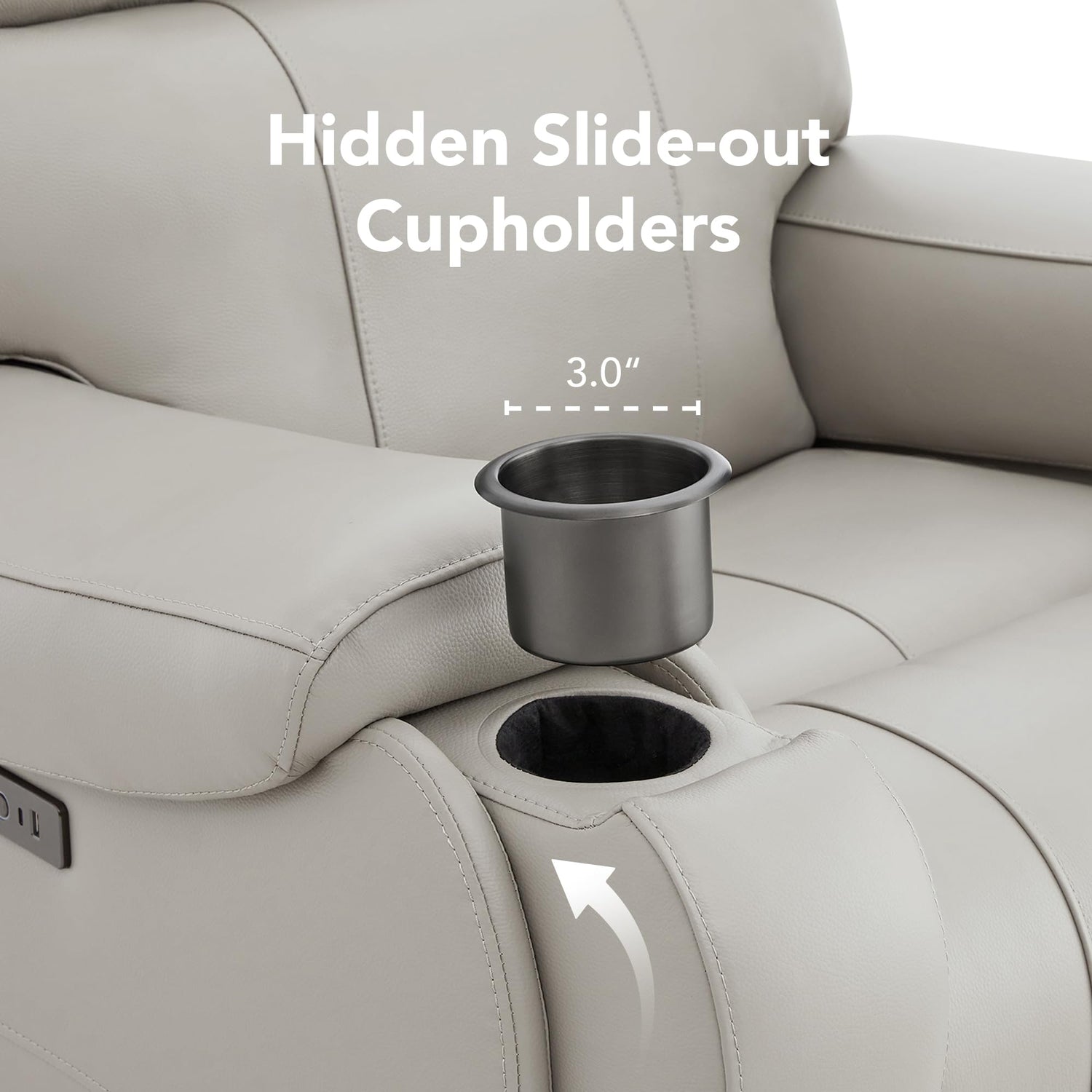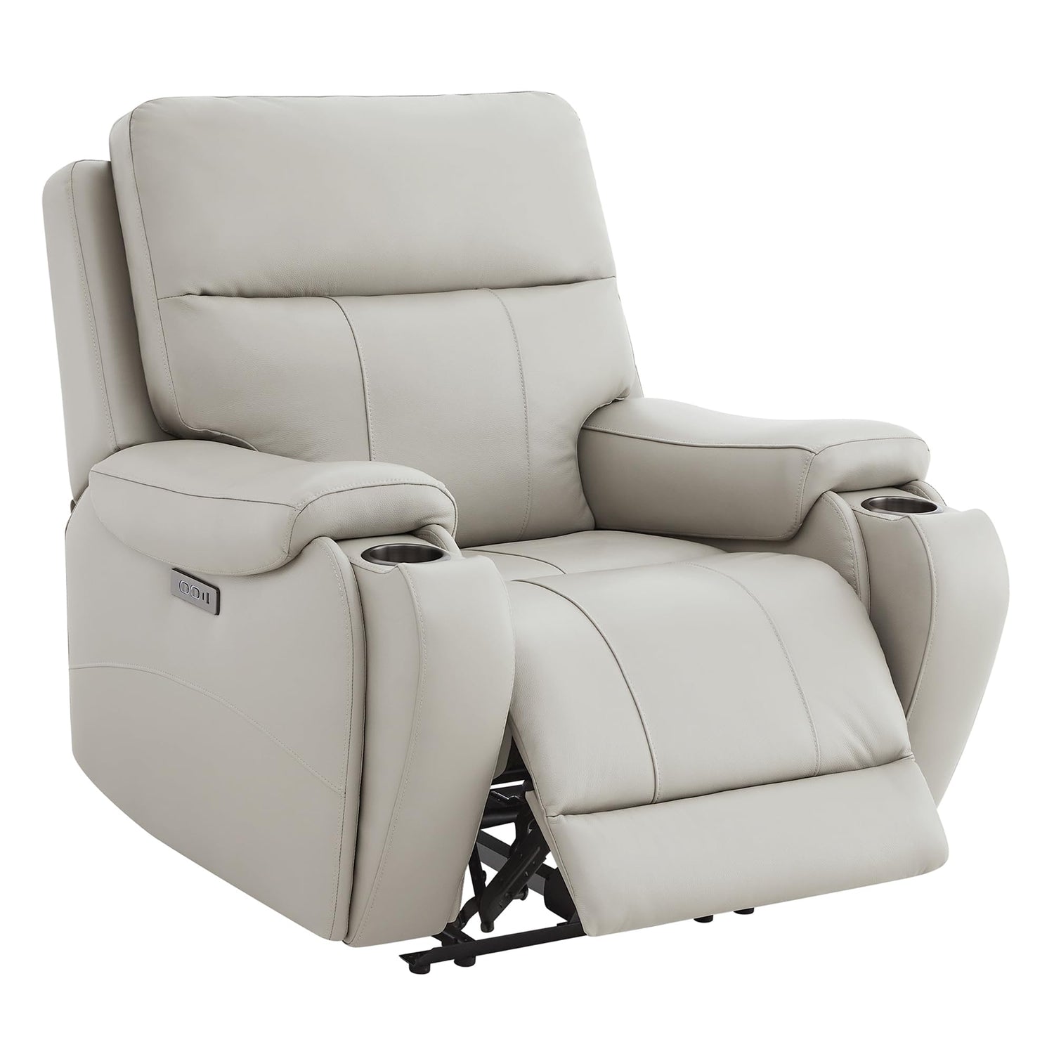 CHITA Large Power Zero Gravity Recliner Chair, Genuine Leather Recliner Chair for Adults with Adjustable Power Headrest and Hidden Slide-Out Cupholders, USB and Type-C Ports, Creamy Grey