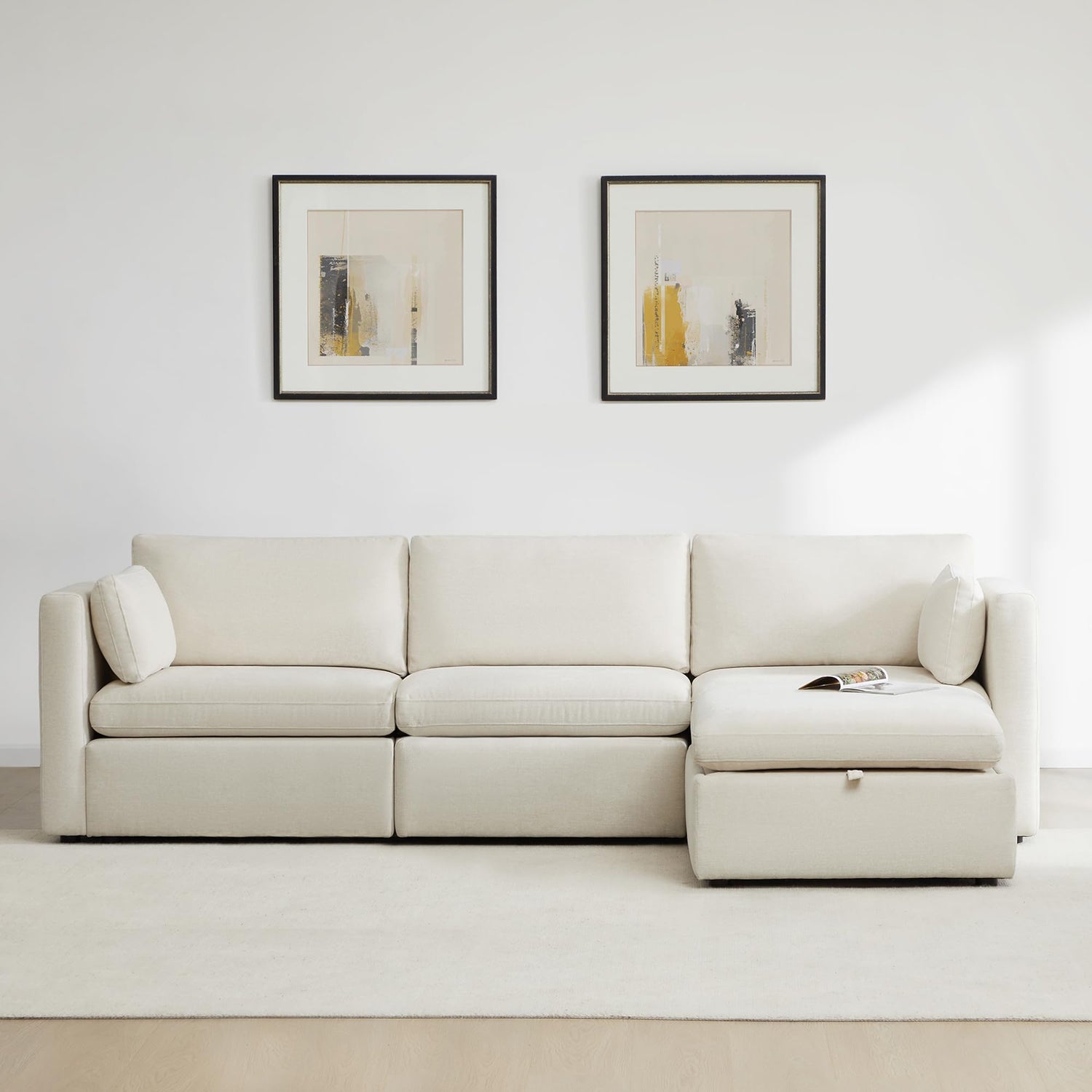 CHITA Oversized Modular Sectional Fabric Sofa Set, FSC Certified Extra Large L Shaped Couch Reversible Chaise Modular Sectional Couch, 112 inch Width,4 Seat Modular Sofa with Storage Ottoman, Linen