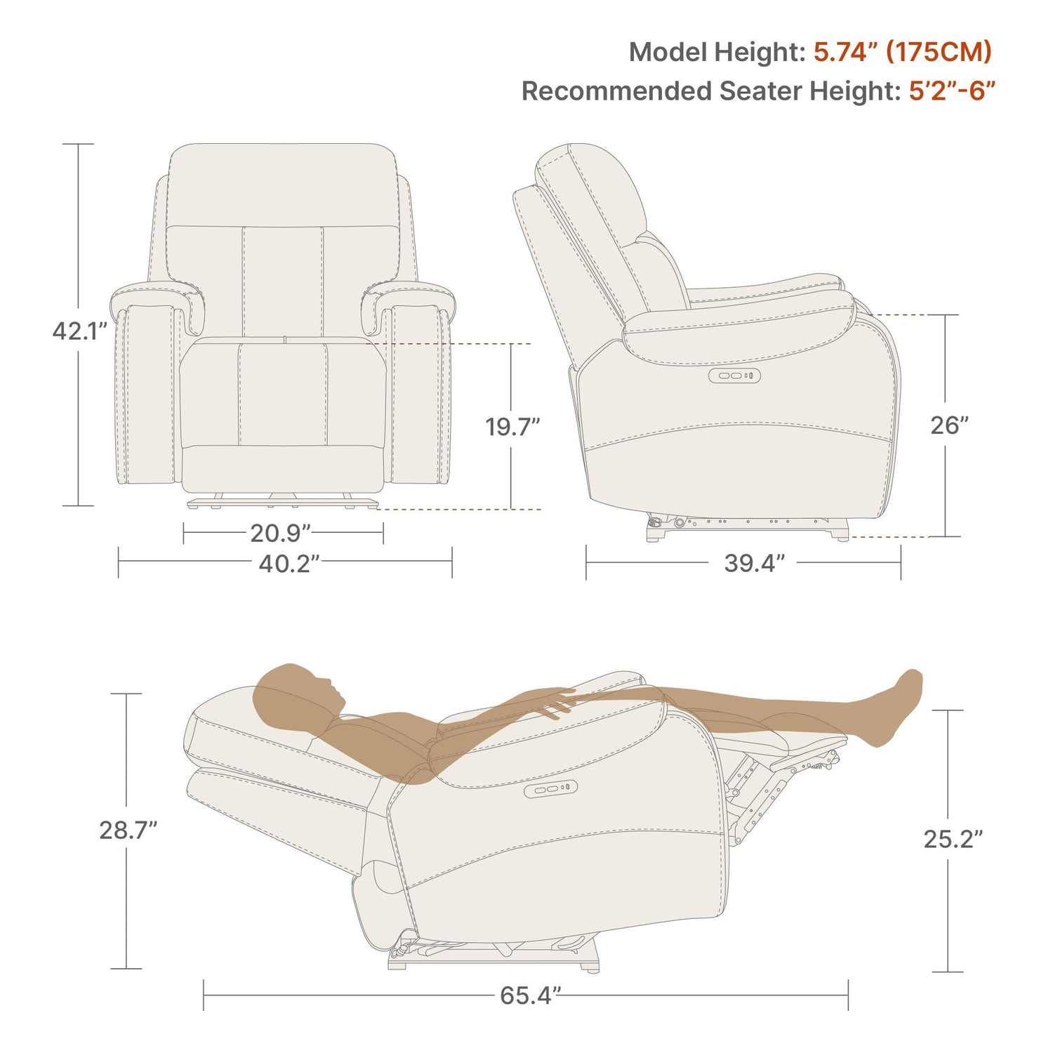- Premium Genuine Leather: CHITA recliner chair features soft and luxurious top grain leather, which is easy to clean and maintain.