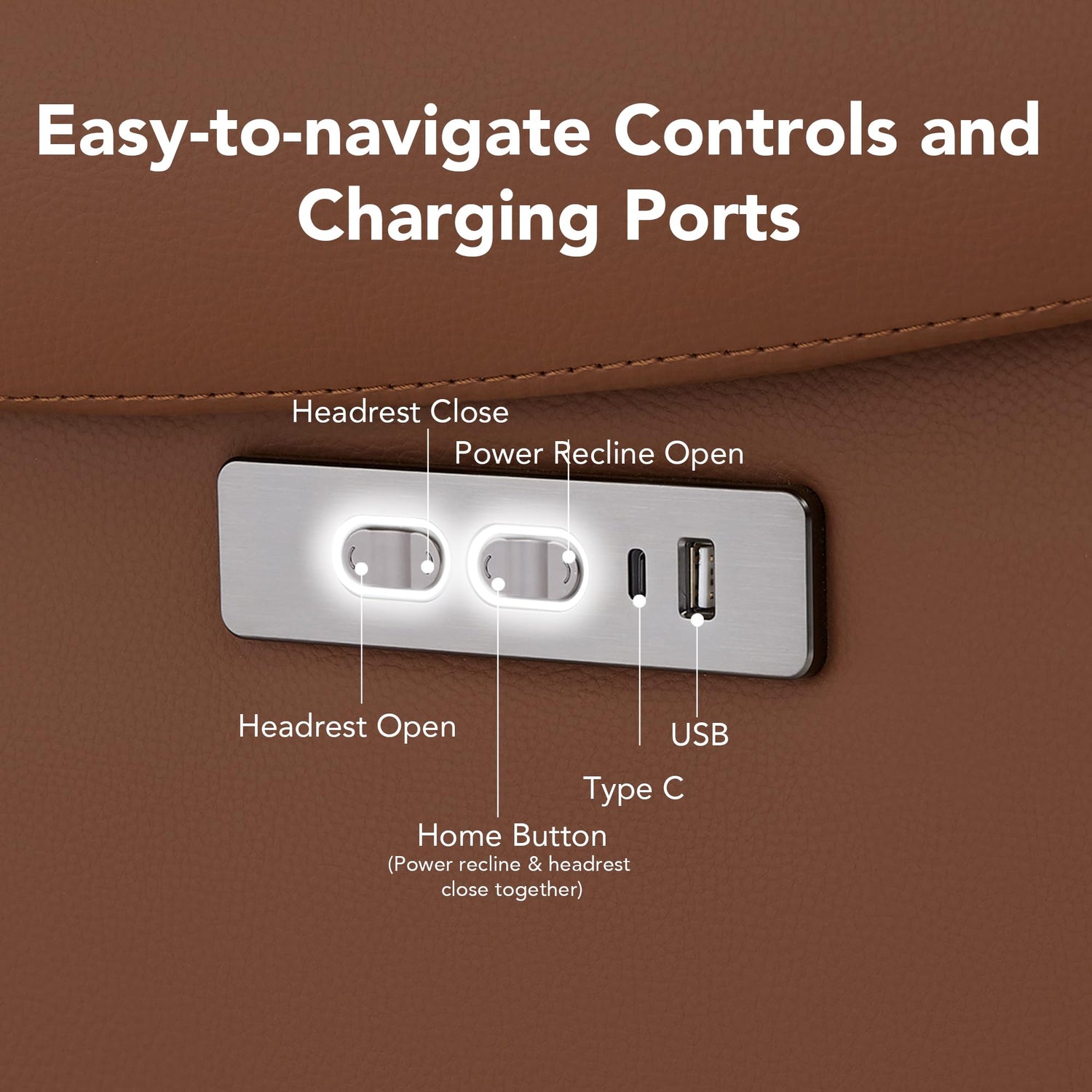 CHITA Power Zero Gravity Recliner Chair, Genuine Leather Recliner Chair for Adults, Adjustable Reclining Sofa Lounge with Hidden Slide-Out Cupholders, USB and Type-C Ports, Saddle
