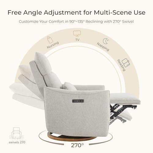 CHITA Swivel Rocker Recliner Chair, Power Nursery Glider Recliner, Nursery Rocking Chair with Adjustable Power Headrest, FSC Certified, Solid Wood Base, Crockery (Gray)