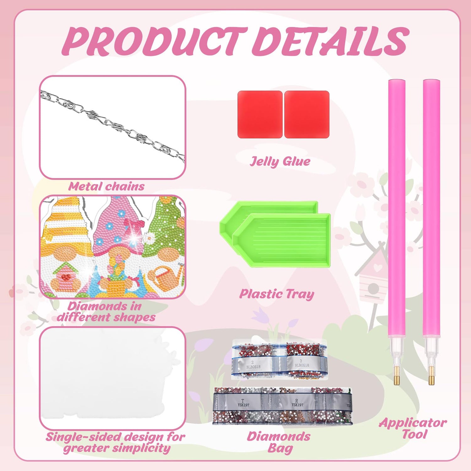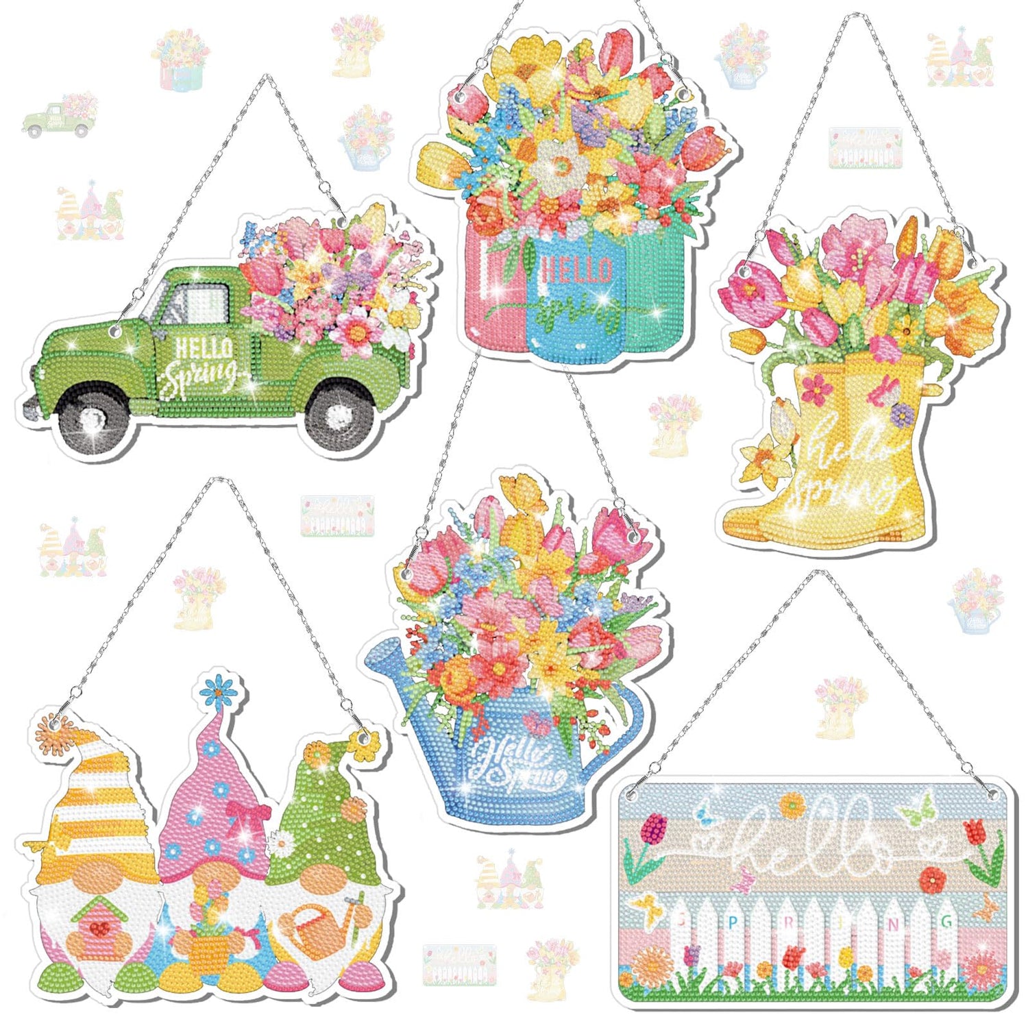- Package Content: each package includes 6 DIY spring ornaments kits, complete with tools, enough diamonds, and hanging chains, providing you with an abundance of creative options; With multiple designs at your disposal, you can explore different themes or create a cohesive ensemble; Share the joy of diamond painting by gifting these sets to loved ones, allowing them to experience the delight of creating their own dazzling artworks; Please note that these products are single sided