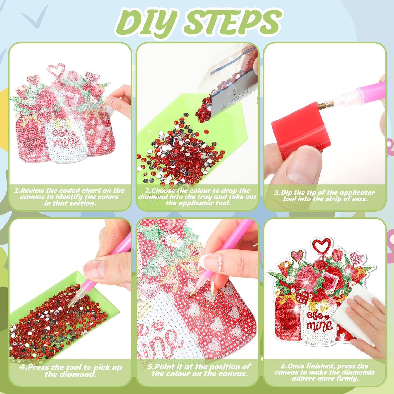 - Package Content: each package includes 6 DIY seasonal diamond painting kits, complete with tools, enough diamonds, and hanging chains, providing you with an abundance of creative options; With multiple designs at your disposal, you can explore different themes or create a cohesive ensemble; Share the joy of diamond painting by gifting these sets to loved ones, allowing them to experience the delight of creating their own dazzling artworks; Please note that these products are single sided
