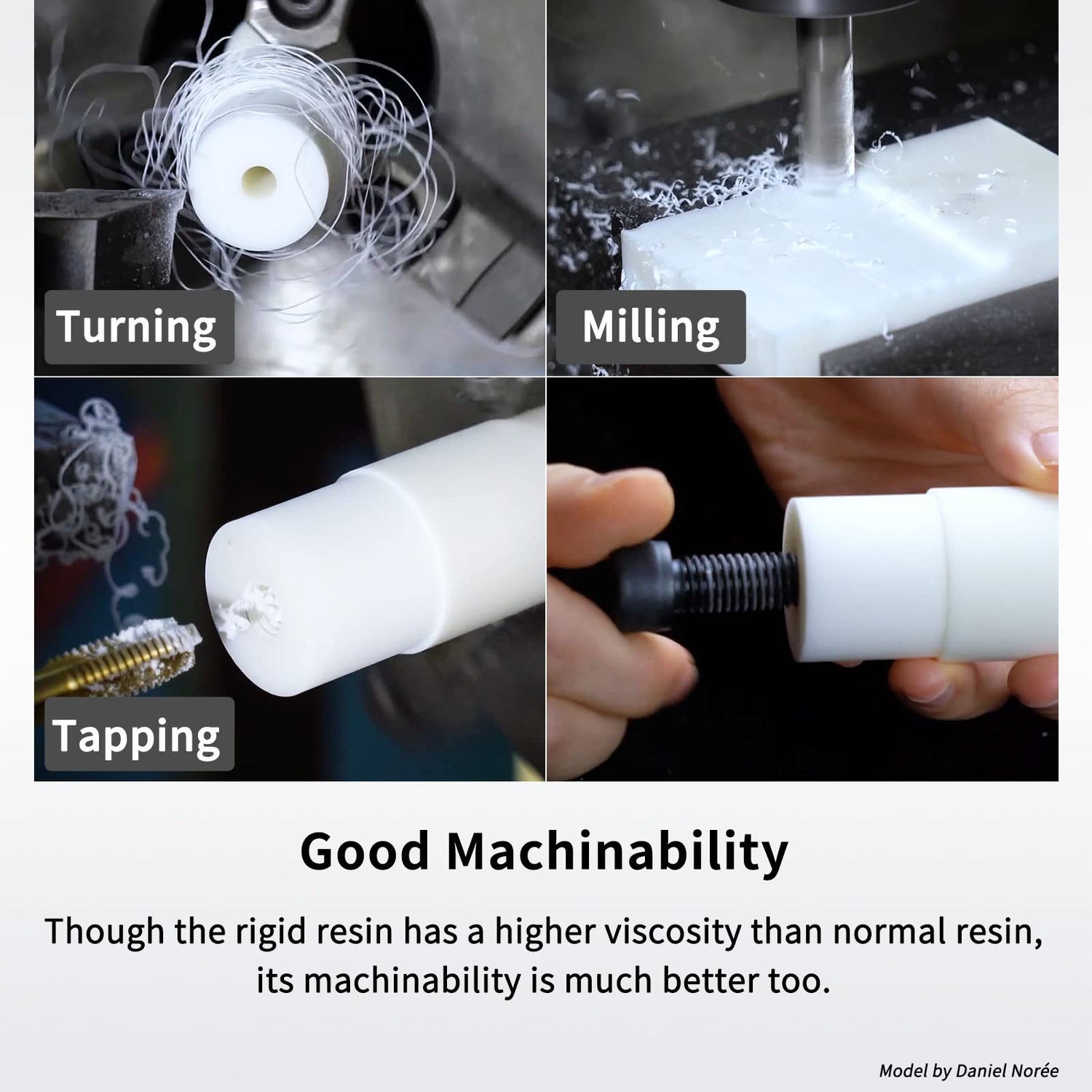 - [Good Machinability]: Rigid resin has great mechanical properties, turning, milling, and tapping it directly from post-curing
