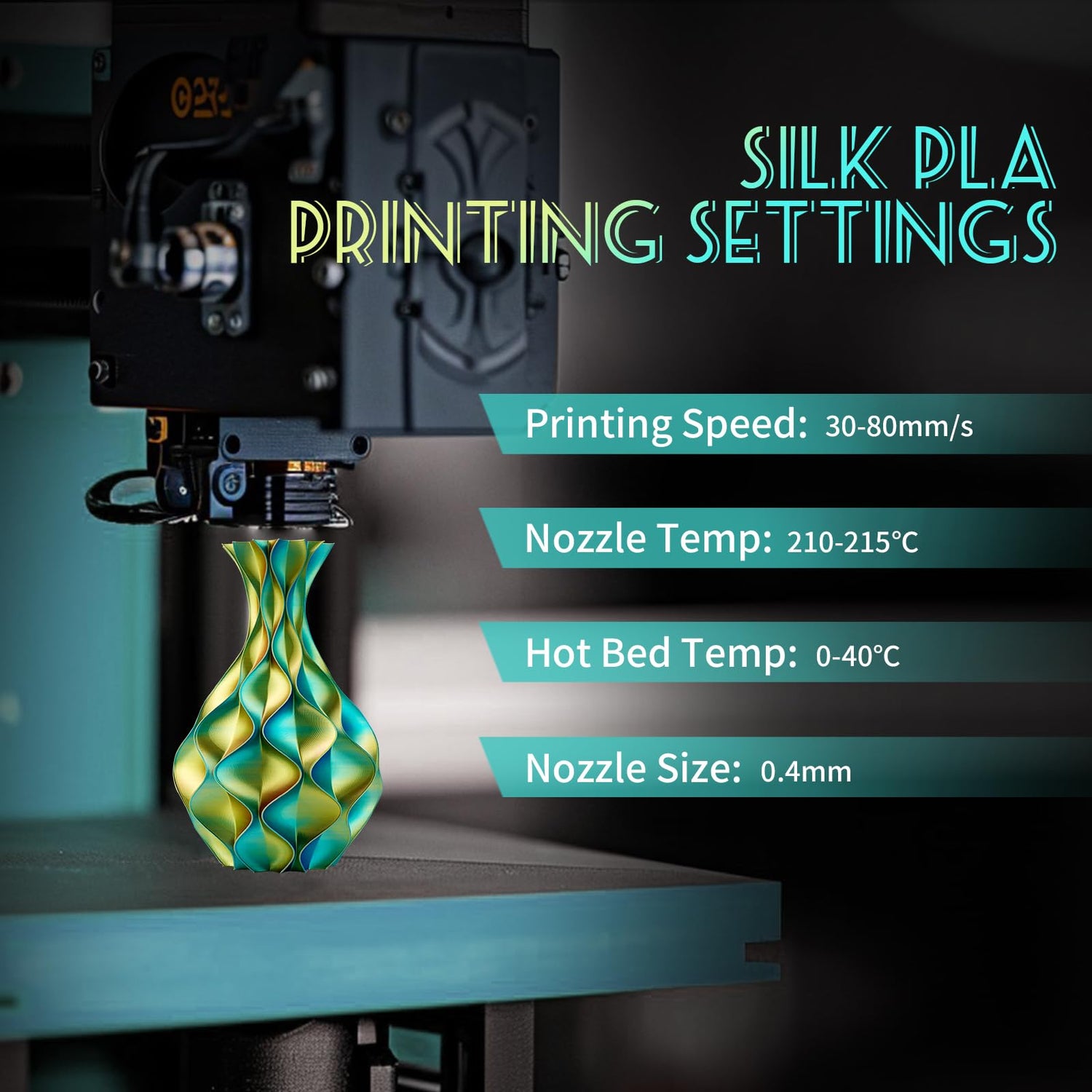 - 【Enhanced Aesthetics】Silk PLA filament is known for its unique visual appeal. It exhibits a silky, smooth finish with a slight shimmer, adding a touch of elegance to your 3D-printed objects. The glossy surface finish and vibrant colors make silk PLA prints stand out and catch the eye.