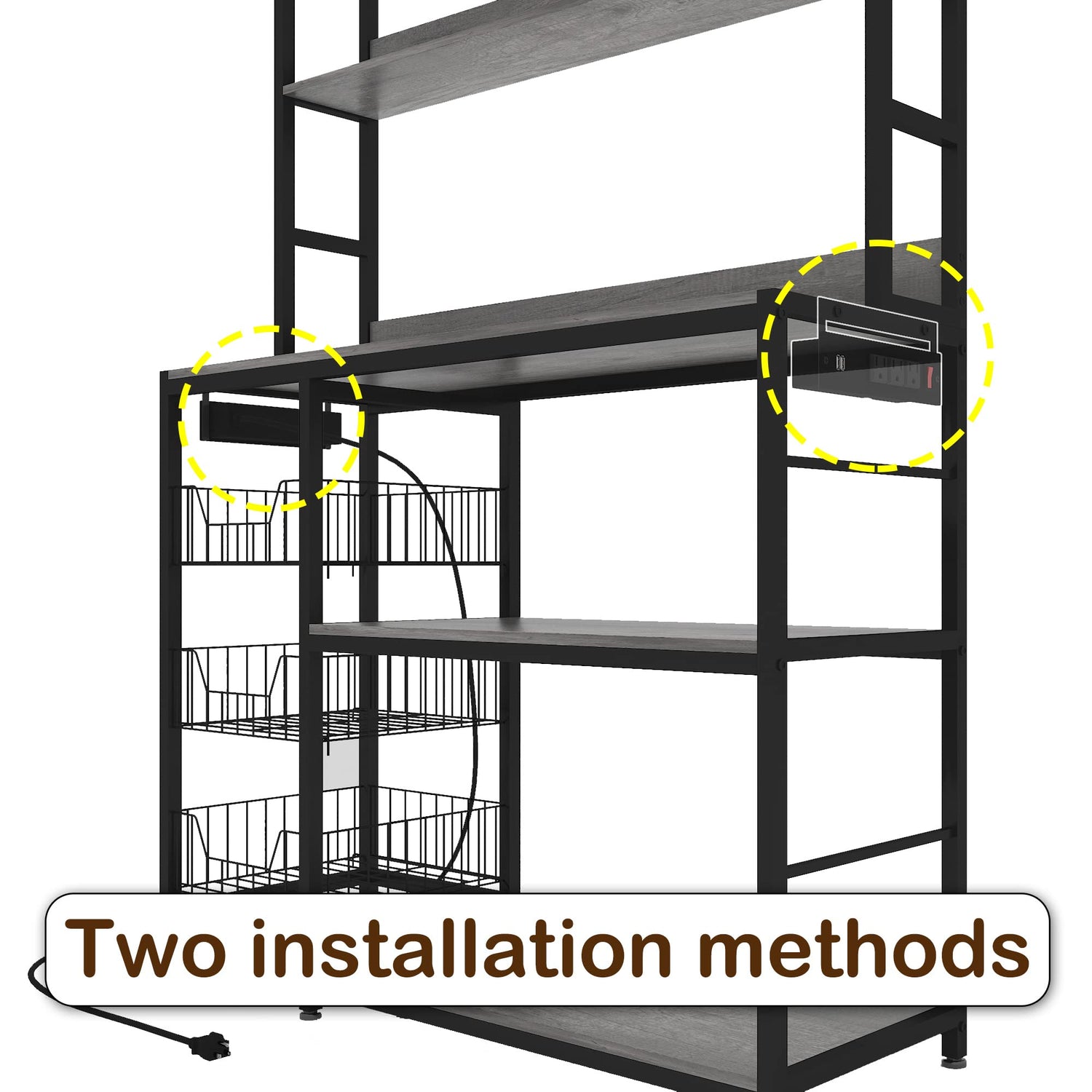 - 【Power Outlets】 This kitchen storage rack includes 3 power outlets,2 USB charging station and a switch button that can easily charge various small kitchen appliances. Help you say goodbye to messy socket wires!