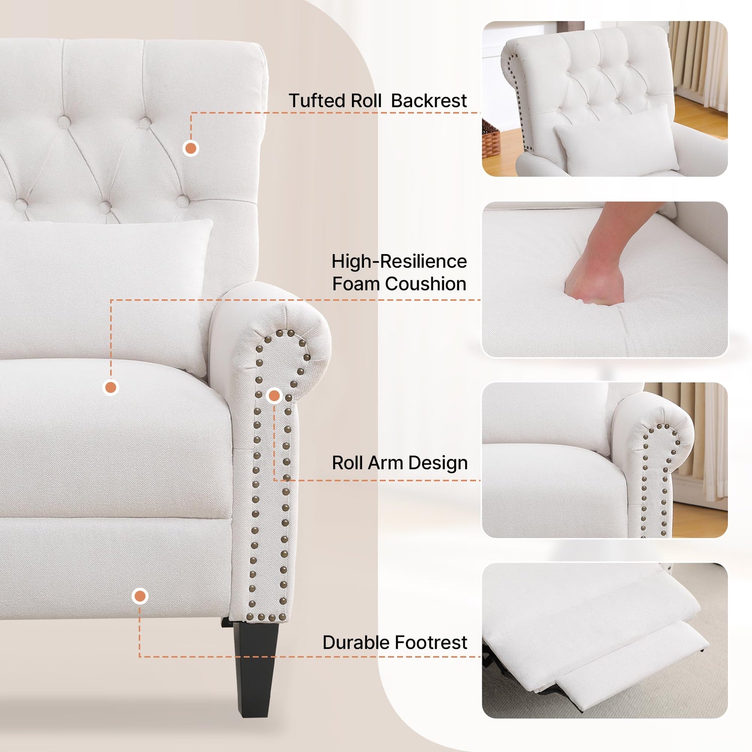 choairy Pushback Recliner Chair, Accent Push Back Chairs Set of 2 with Adjustable Footrest Wingback, Upholstered Linen Reclining Sofa with Side Pocket, Comfy Modern Armchair for Living Room, Beige