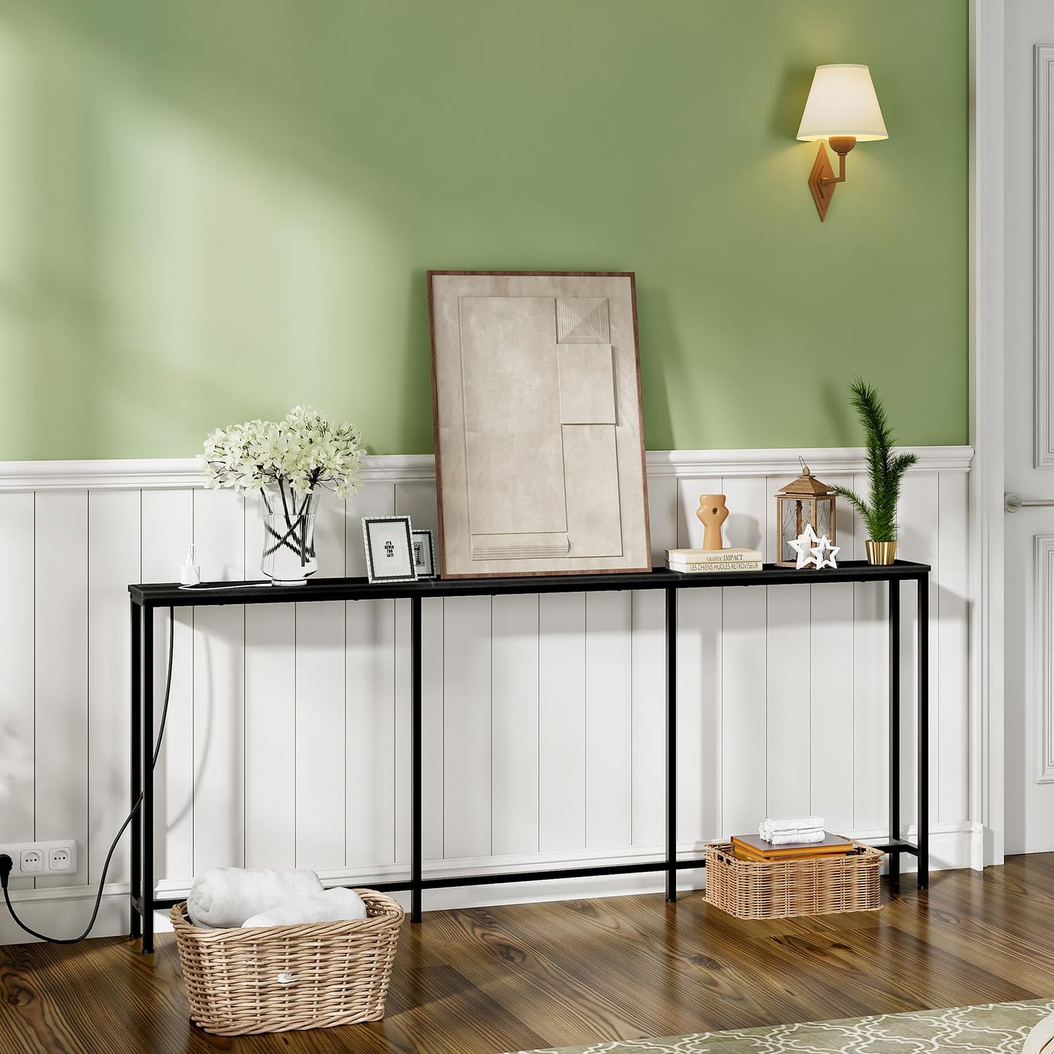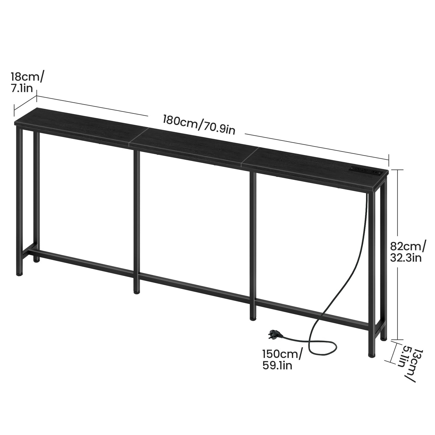 CHOEZON 70.9" Narrow Console Table with Power Outlet 7.1" Skinny Sofa Table, Long Behind Couch Table with Charging Station, Entryway Table for Hallway, Living Room Black TXG18UBB