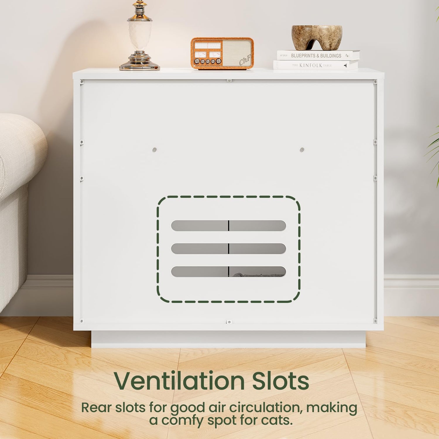 - Spacious and Cozy: The litter box enclosure, sized 31.5”L x 17.7”W x 28.3”H, making a comfortable space for your cat. The large entrance allows cats of various sizes to enter and exit easily