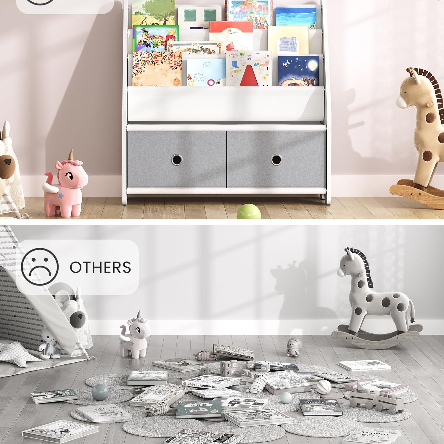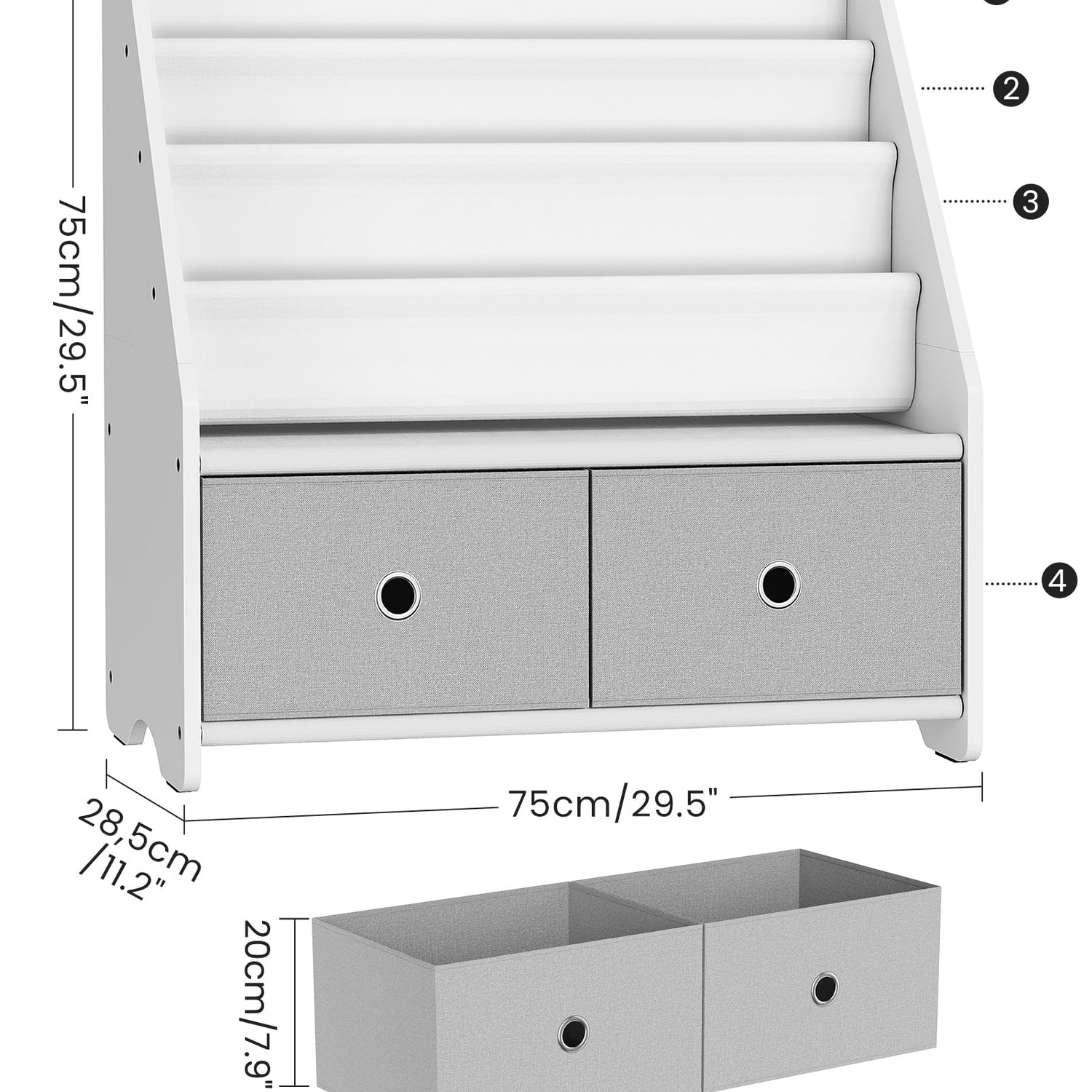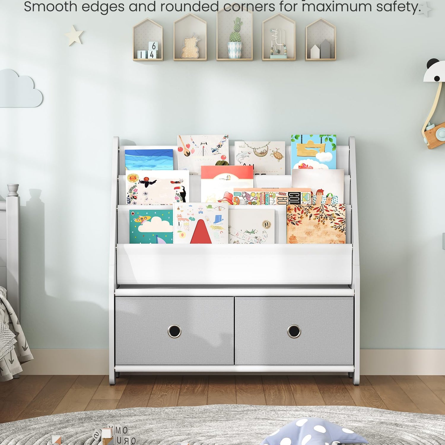 CHOEZON Kids Bookshelf and Toy Storage, 4 Tier Large Capacity Kids Book Rack, Sling Kid Bookcase, for Kids Room, Nursery, Playroom, White and Gray MCW06WT
