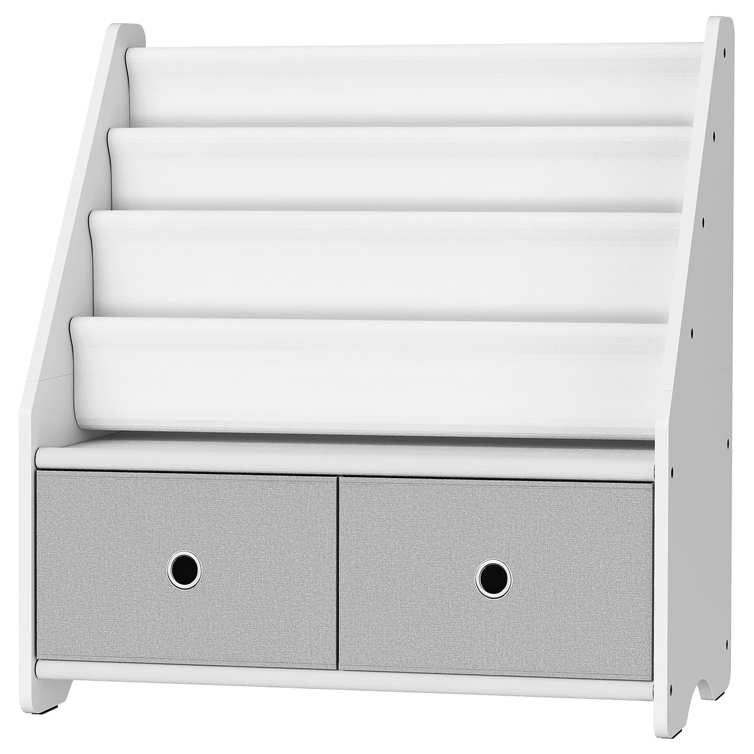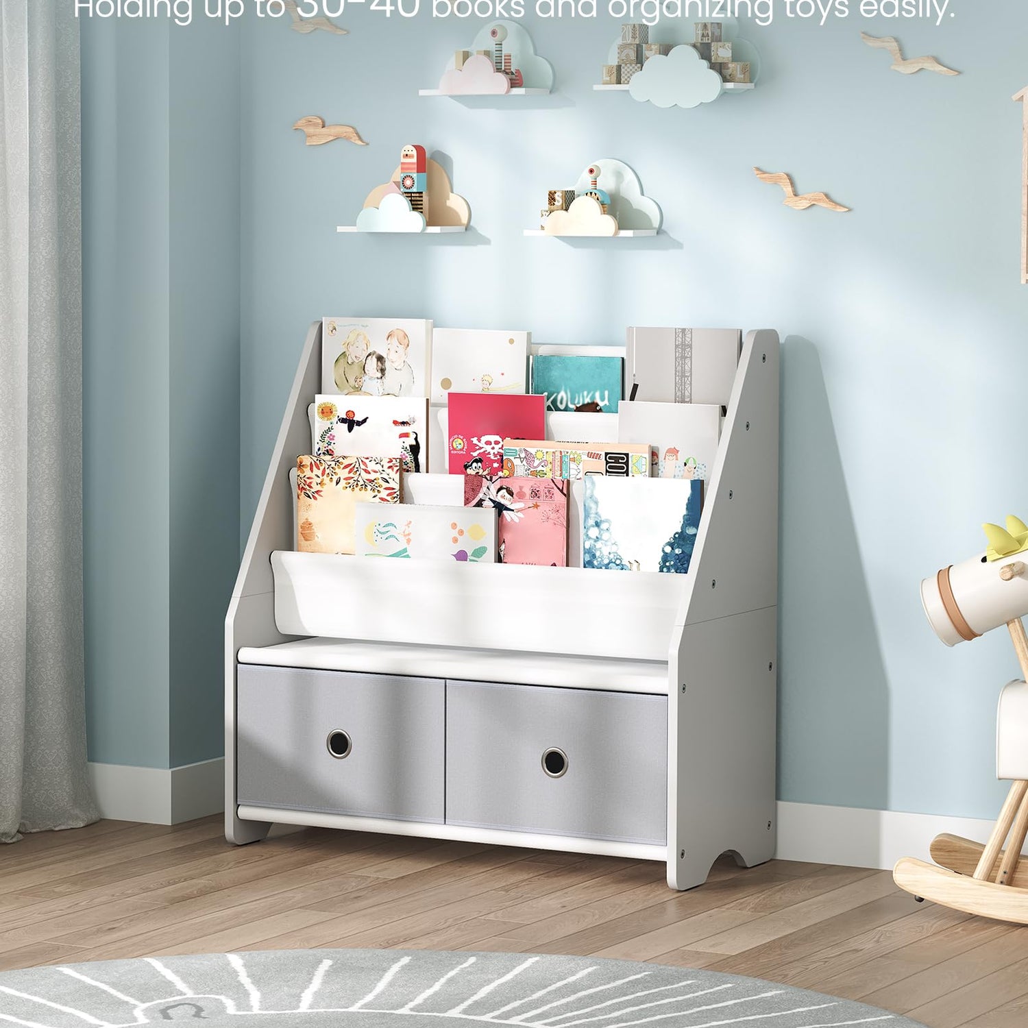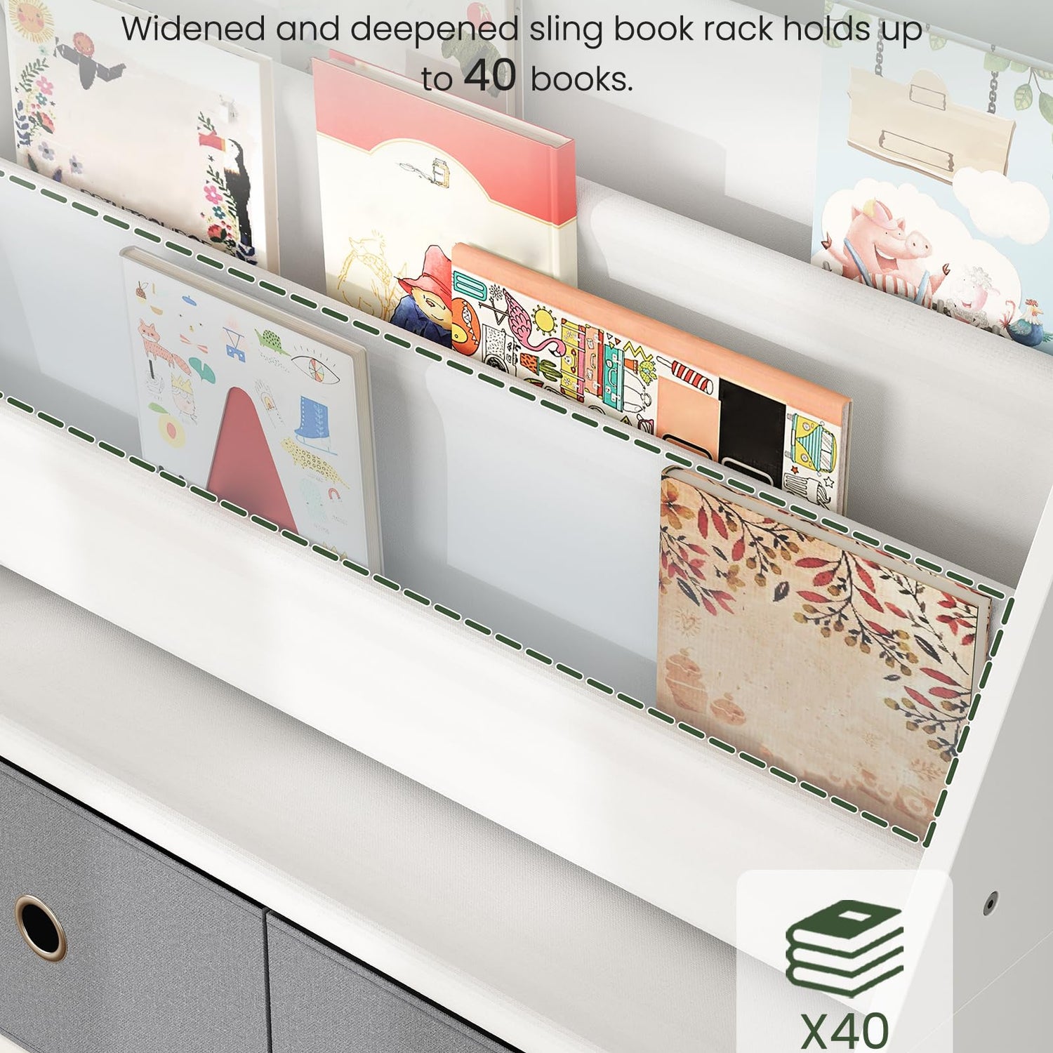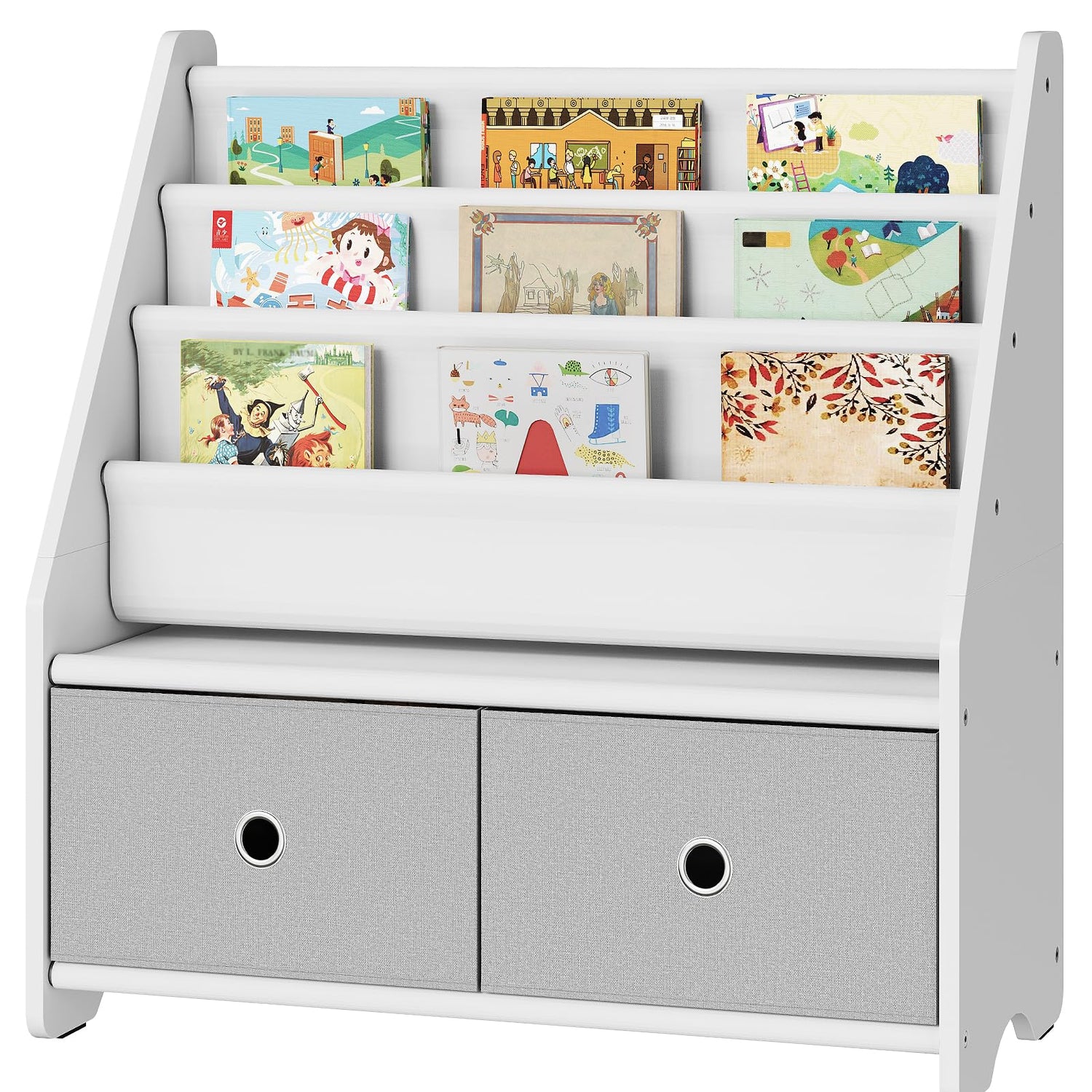CHOEZON Kids Bookshelf and Toy Storage, 4 Tier Large Capacity Kids Book Rack, Sling Kid Bookcase, for Kids Room, Nursery, Playroom, White and Gray MCW06WT