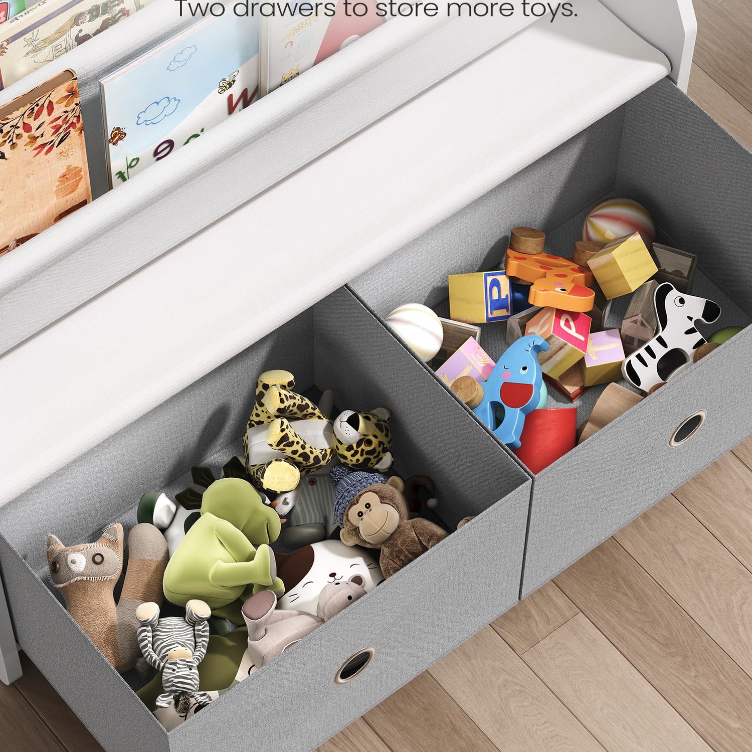 - Stylish and All-Match: Embracing a modern design, the bookshelf's white hue and gray accents create a refreshing and minimalist ambiance. It seamlessly blends into kid's rooms, study rooms, and living spaces, cultivating an enjoyable reading vibe