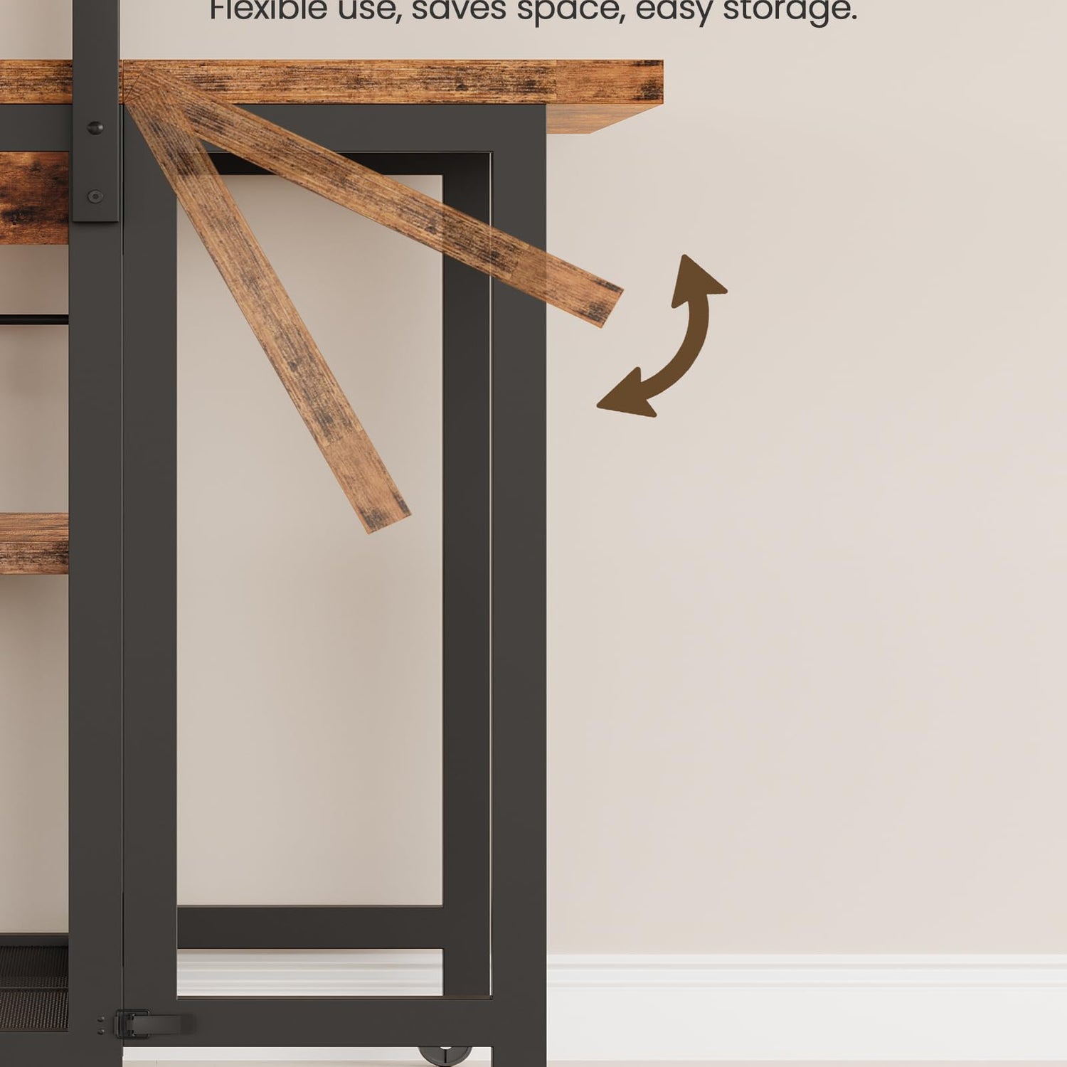 - Folding Design: This kitchen island features a foldable tabletop, measuring 38.5"L x 14.9"W x 66.9"H folded and 38.5"L x 21.6"W x 66.9"H unfolded. It easily transitions from a dining to a bar table, adapting to various kitchen activities and saving space