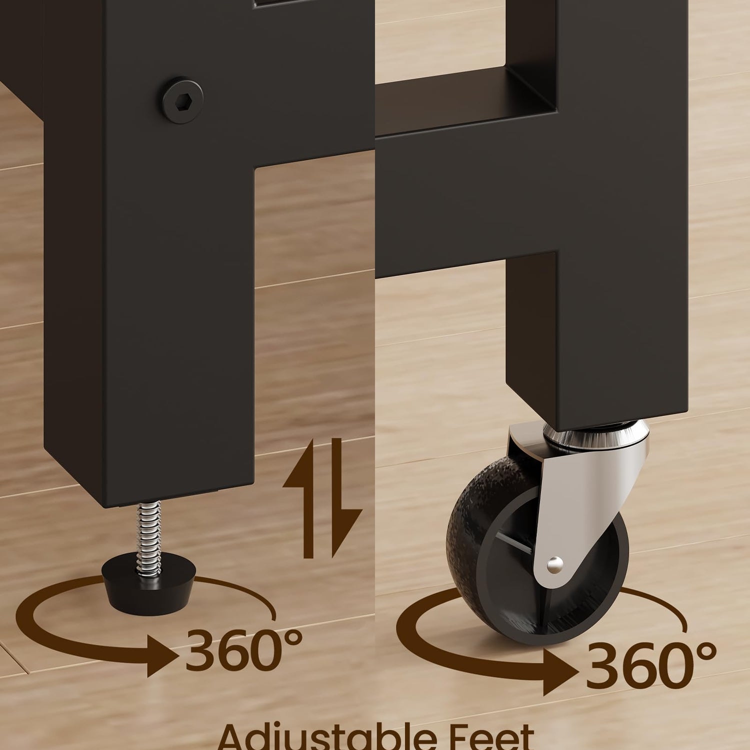 - Sturdy Construction: Made from high-quality metal and particleboard, this kitchen island is built to last. The top bears up to 66 lb while the mesh and middle shelves bear up to 44 lb and 44 lb respectively, ensuring it withstands daily use