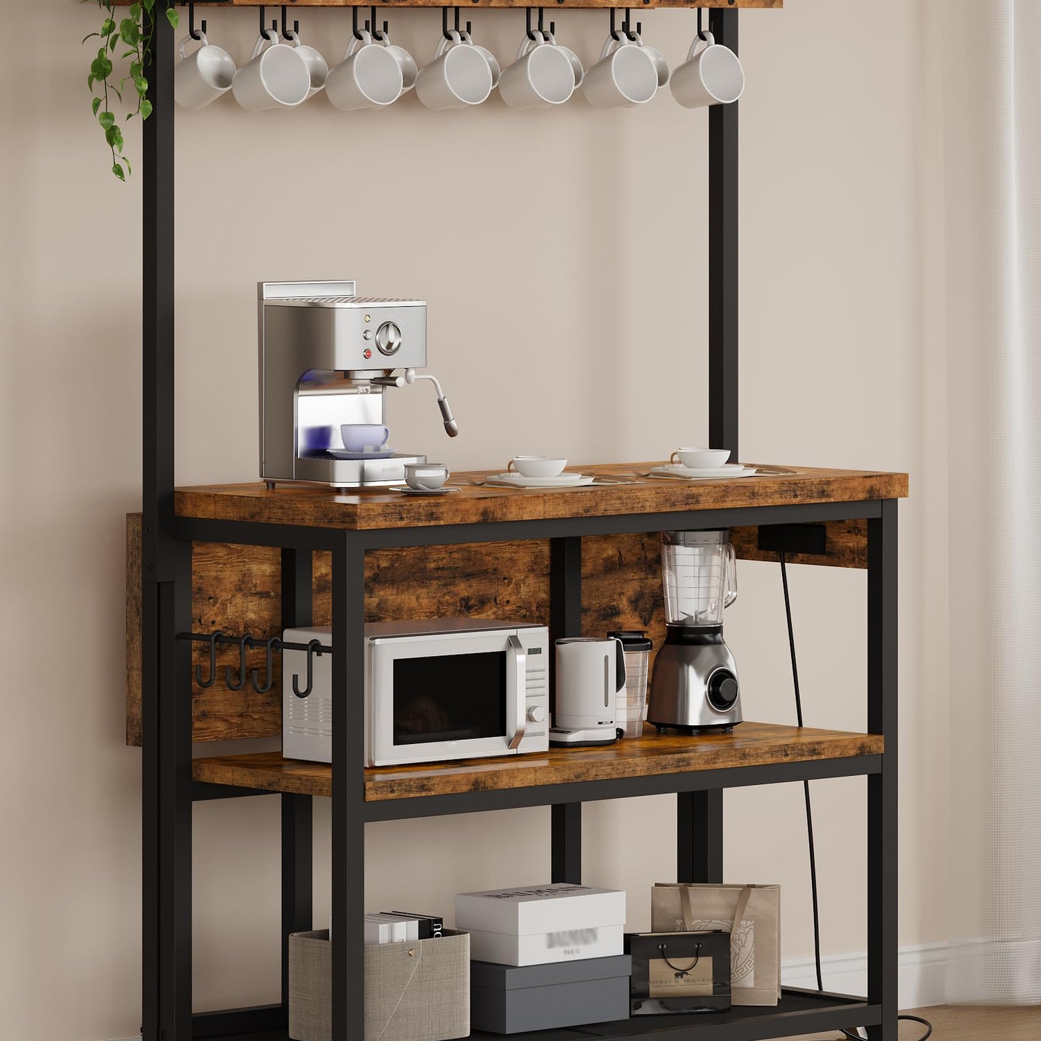 CHOEZON Kitchen Island with Power Outlet, Kitchen Island Table with Folding Top, Stationary Storage Islands, Coffee Bar with Outlets and USB Ports, for Dining Room, Rustic Brown and Black TZD01UBF
