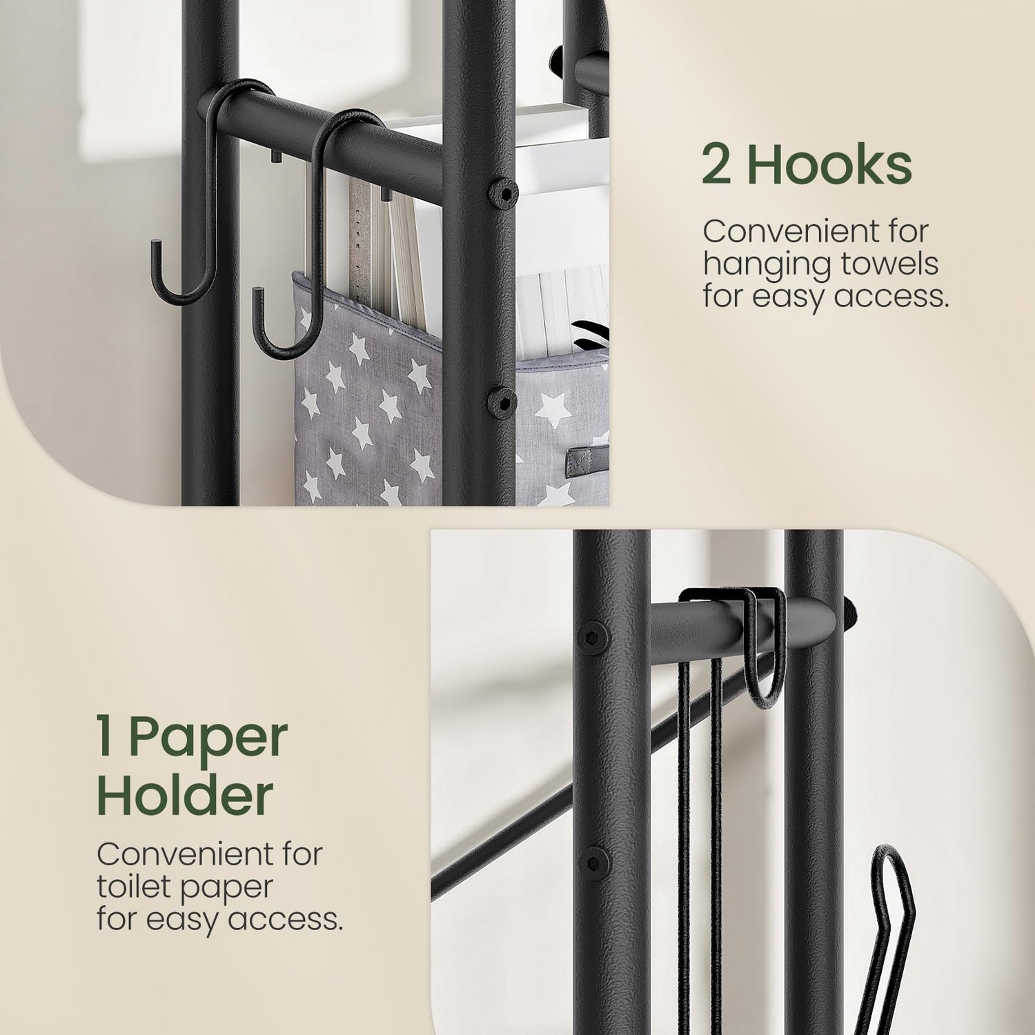 - Huge Storage Space: The 6-tier (3 tiers on each side) storage rack provides ample storage space for towels, toilet paper, shower gel, shampoo, soap, plants, and other bathroom essentials, keeping your bathroom clean and organized