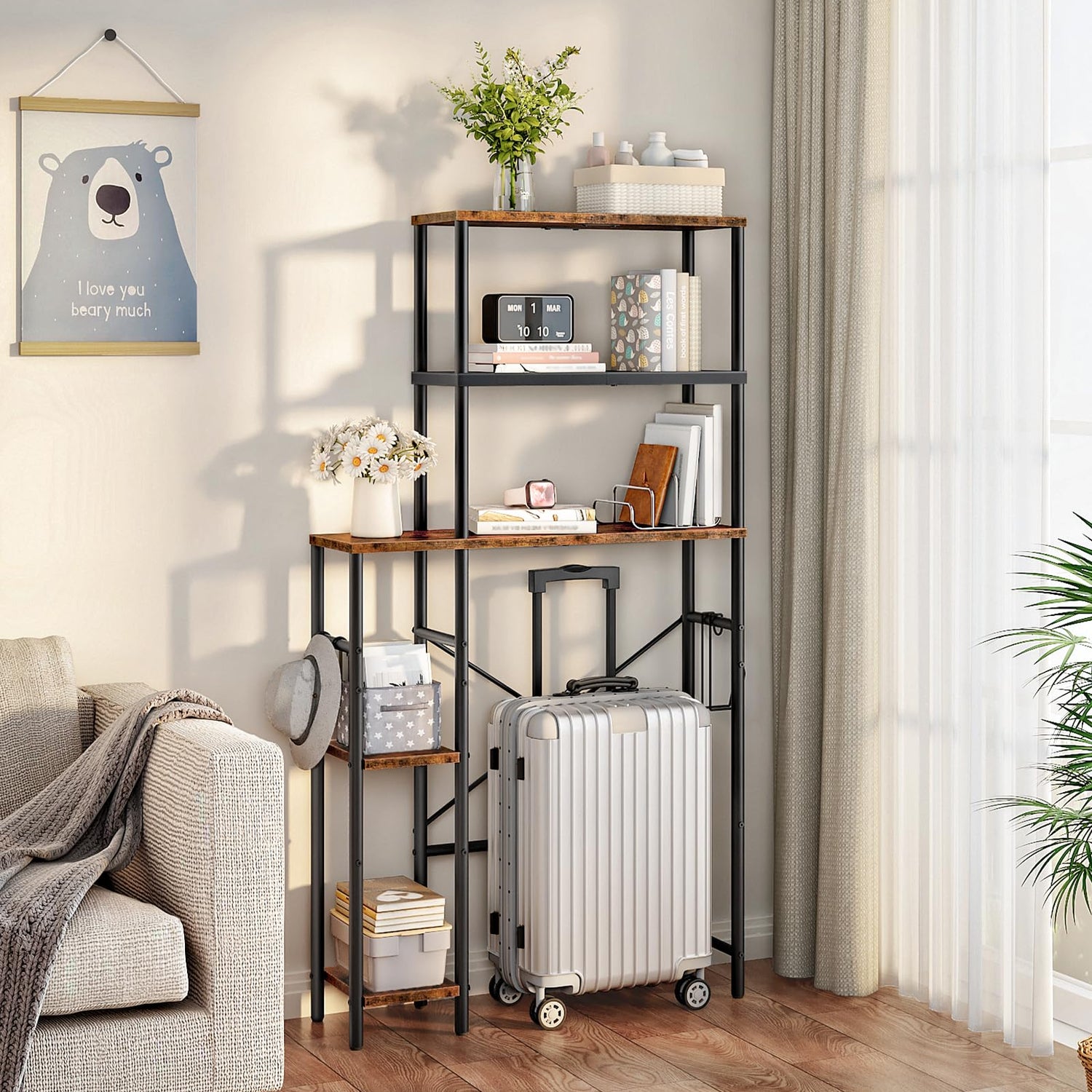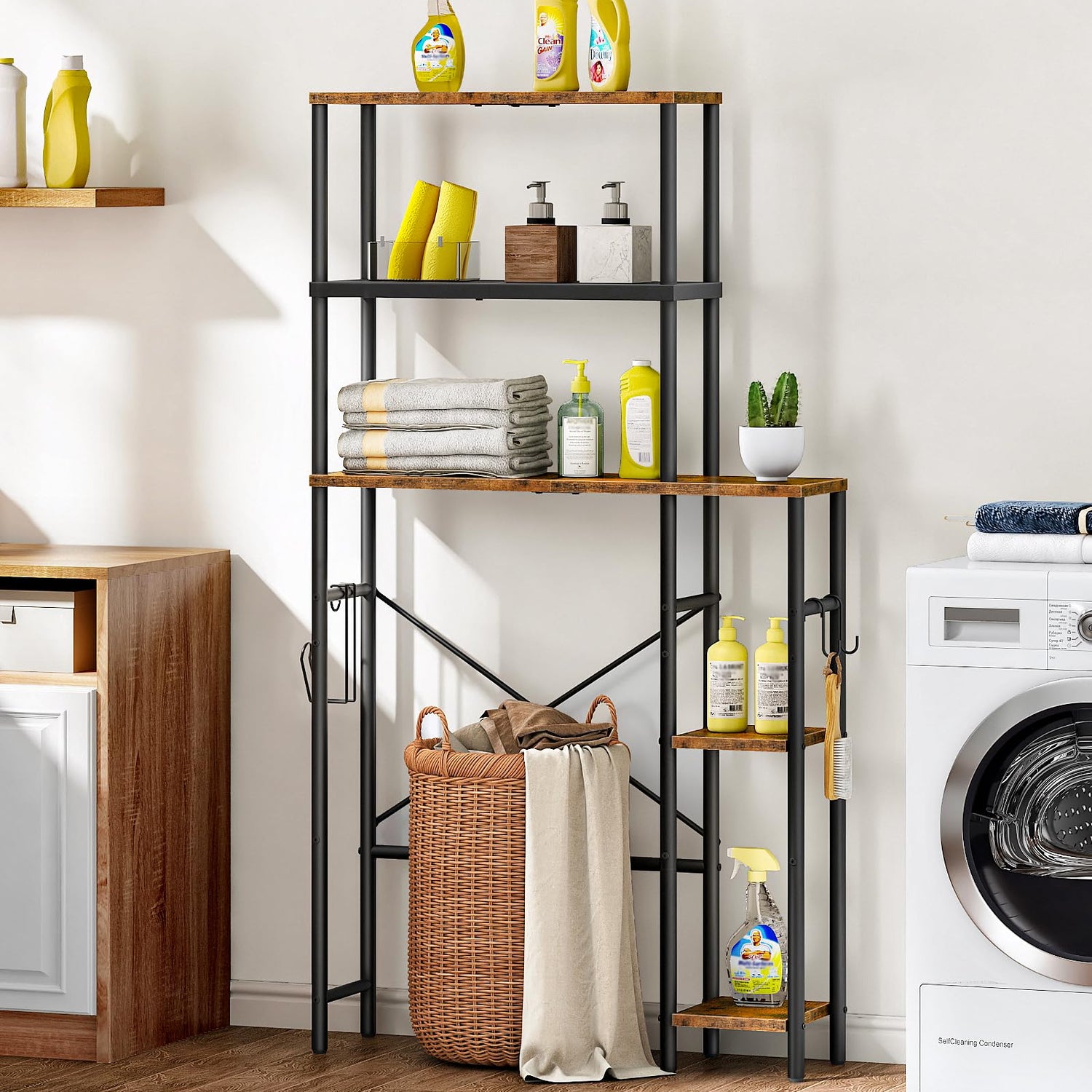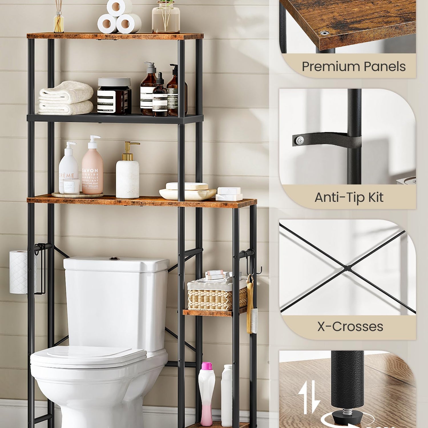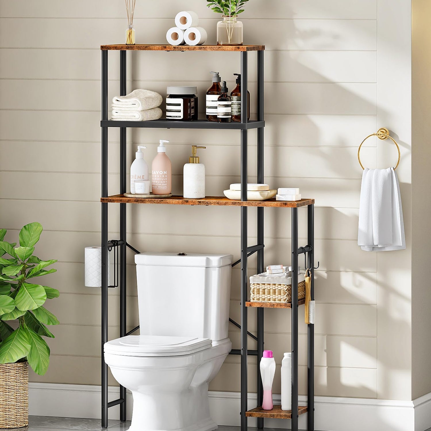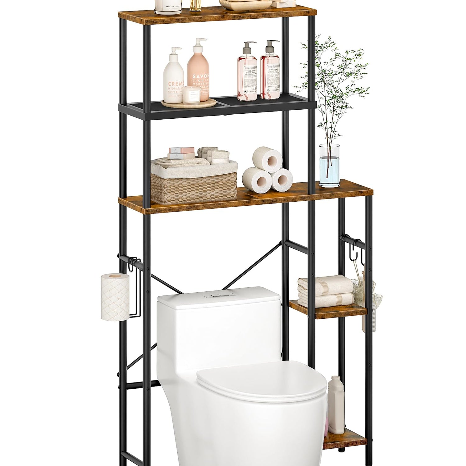 CHOEZON Over The Toilet Storage, 6-Tier Bathroom Organizer Shelf, Over-Toilet Storage Cabinet with Toilet Paper Hook, Space Saving, for Bathroom, Laundry, Entryway, Rustic Brown and Black TTS02BF