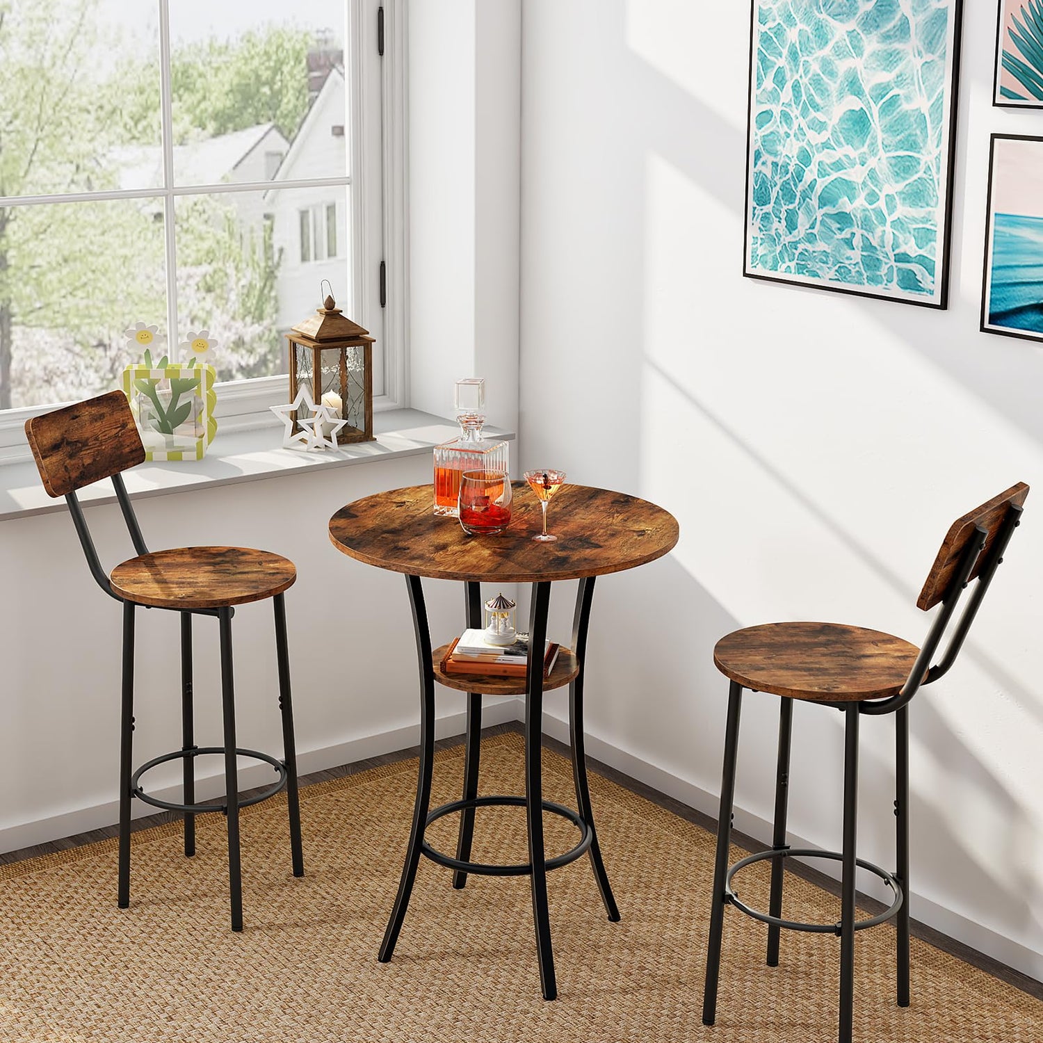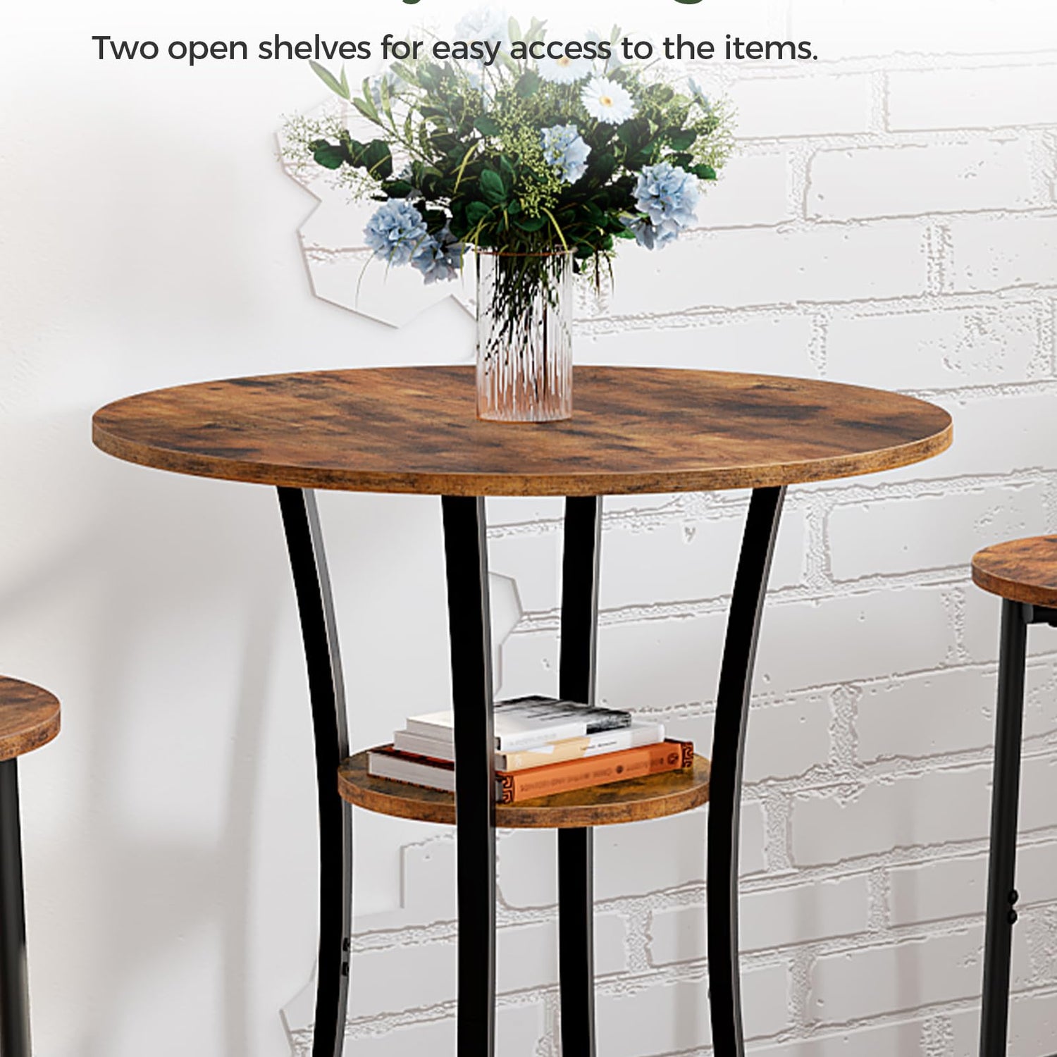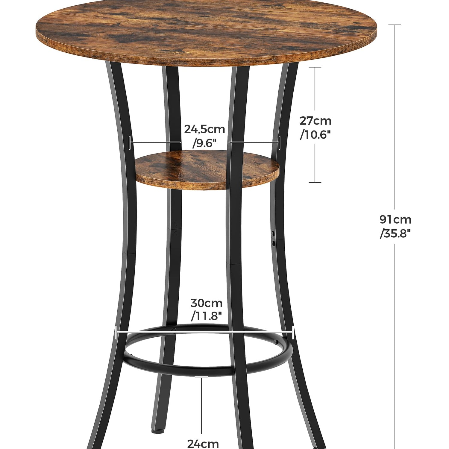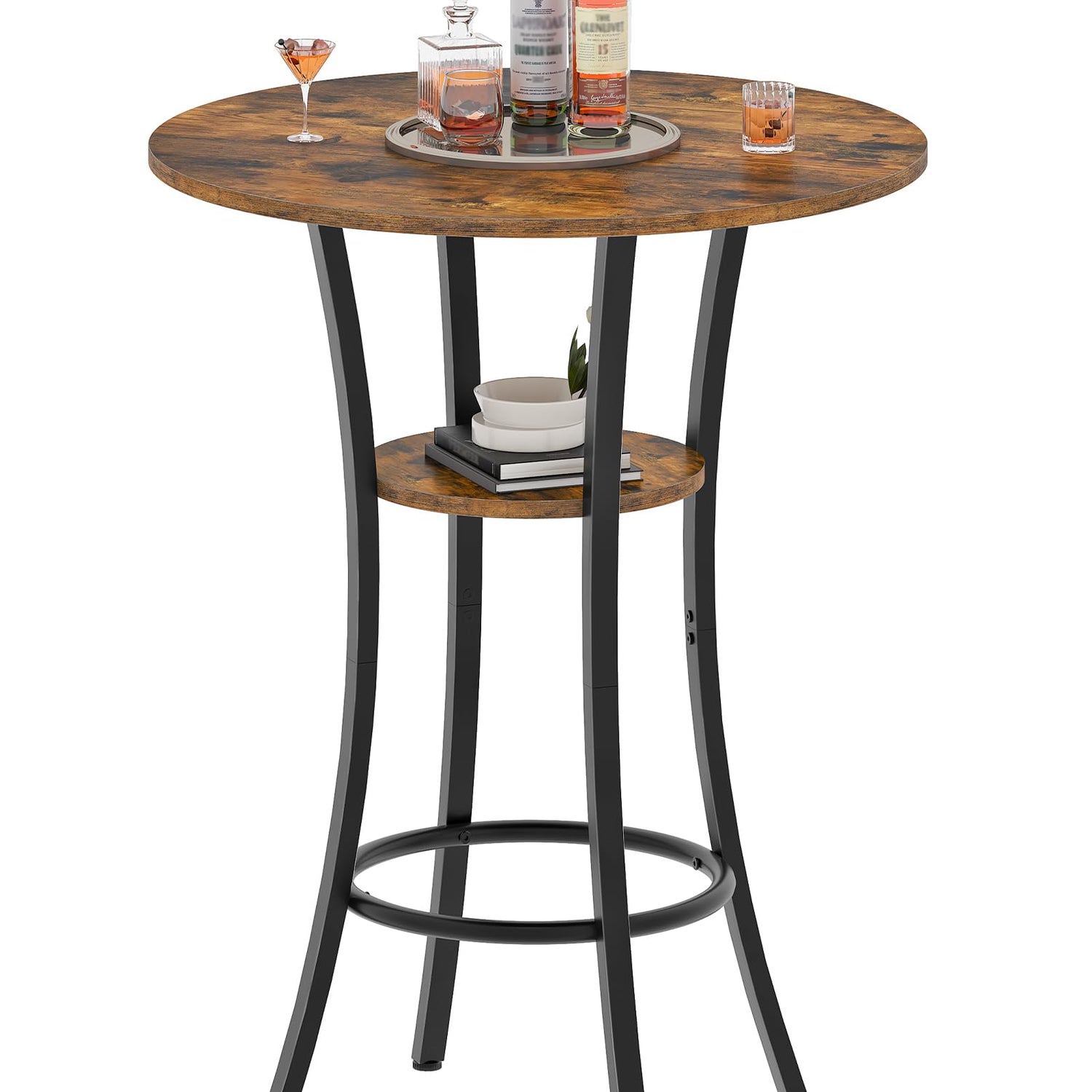 - 2-Tier Storage Table: Measuring 23.6"L x 23.6"W x 35.8"H, the round bar table features a double-tiered design for generous storage of frequently used items. Its open layout facilitates easy access to your belongings, ensuring a seamless storage experience