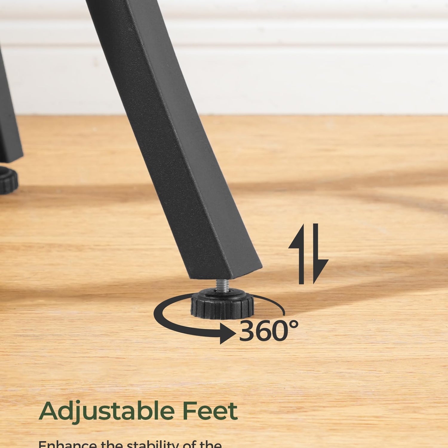 - Stable Bar Table: This pub table is crafted from quality particleboard and a sturdy metal frame. It features a curved design and 4 adjustable feet to ensure even weight distribution. The tabletop supports up to 110 lb, while the middle shelf holds 110 lb