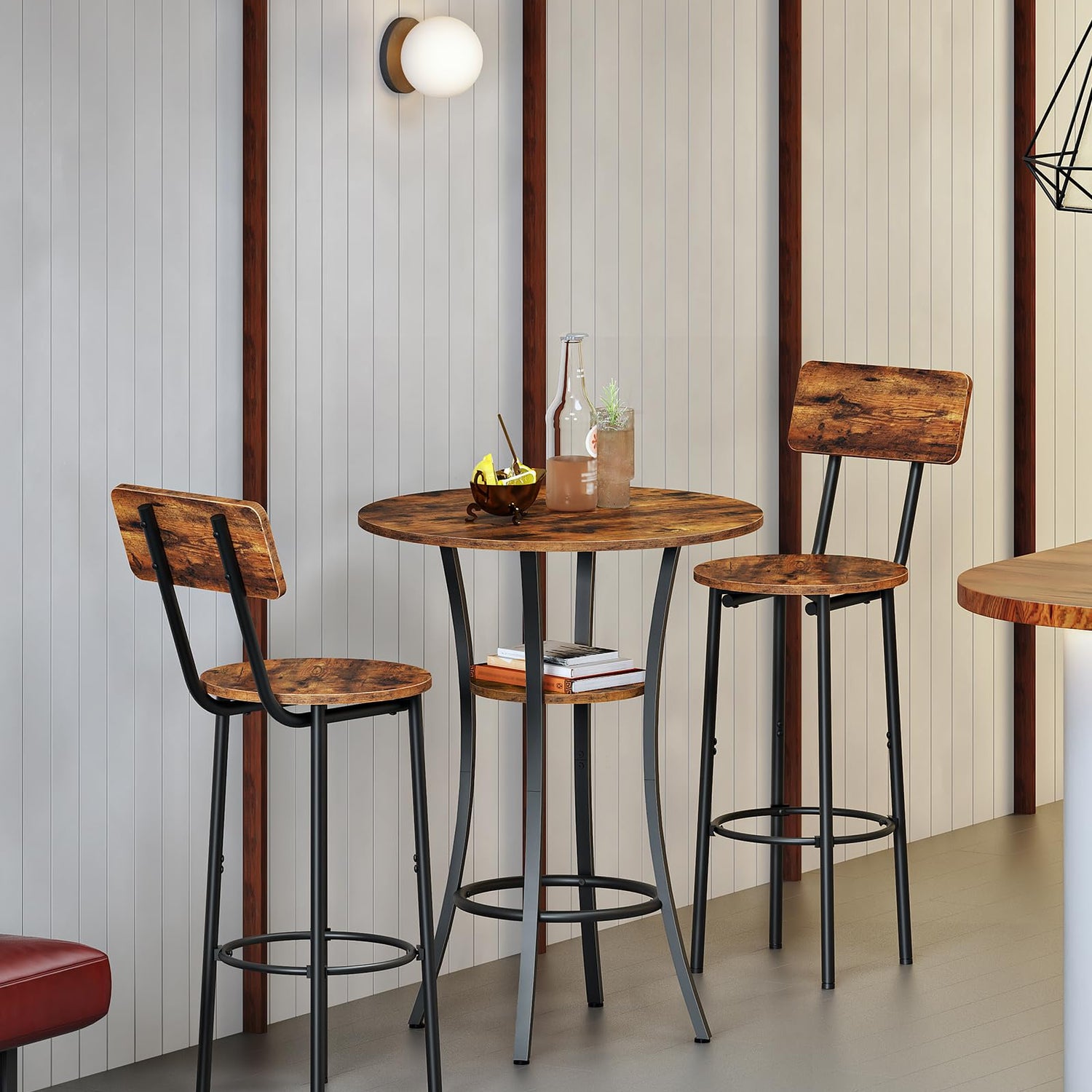 CHOEZON Round Bar Table, 2-Tier High Top & Counter Height Dining Table, for Bistro, Pub, Kitchen, Living Room, Rustic Brown and Black TBT03BF