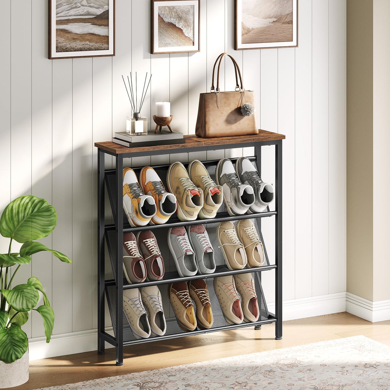- Versatile Storage Solution: Ideal for bags, photo frames, and decorative items on top, while the 3-tier mesh shelf below holds 9+ pairs of shoes with ample space for various sizes. The bottom space is designed for shoe storage and daily cleaning