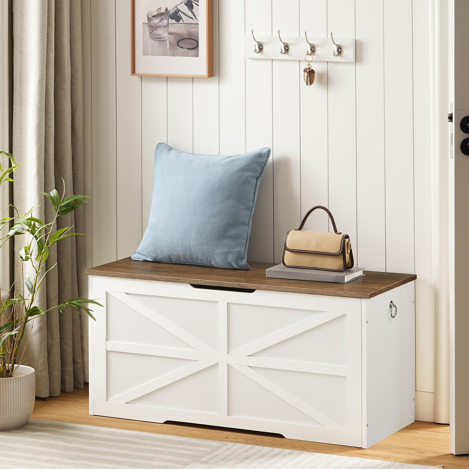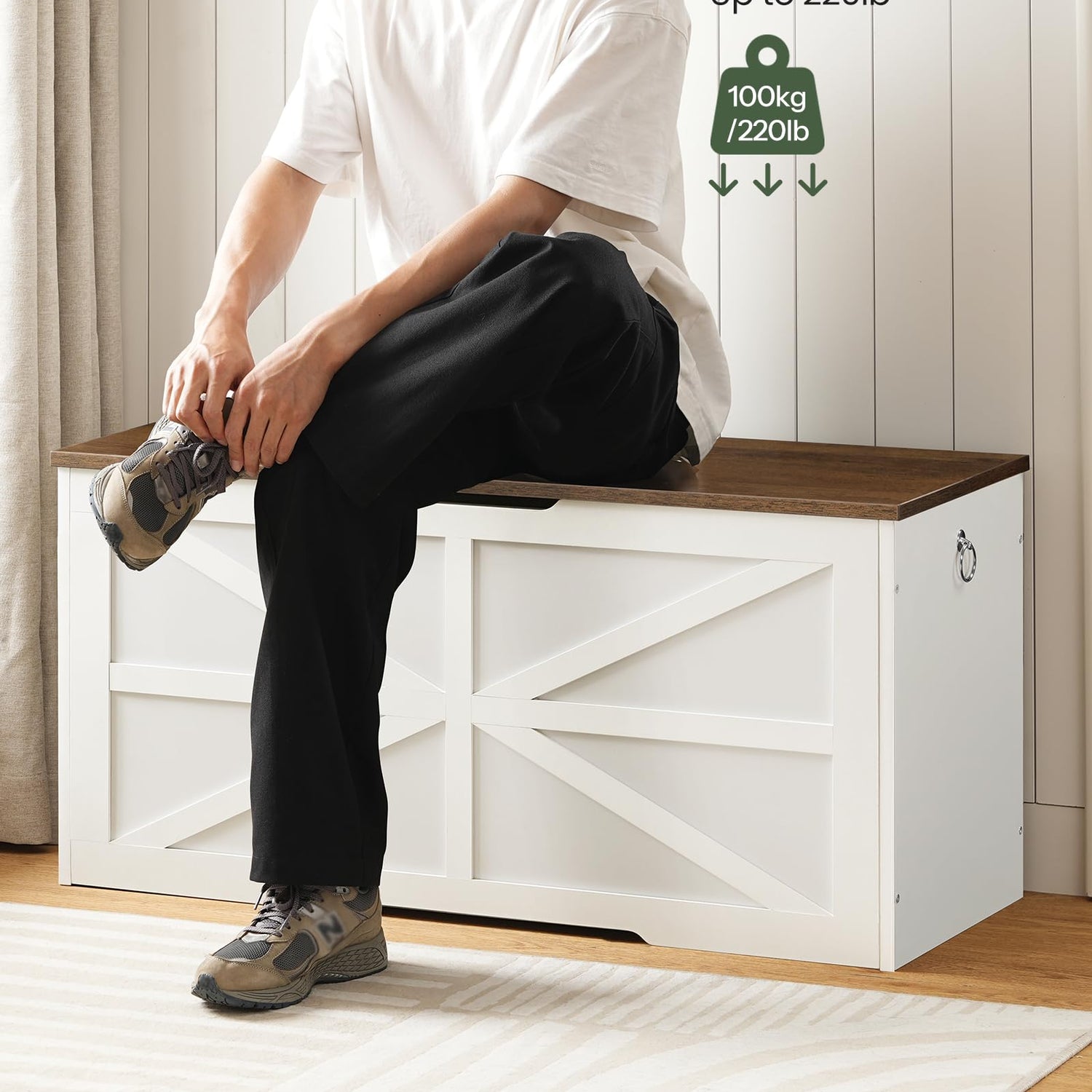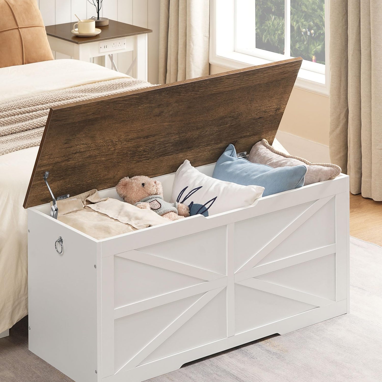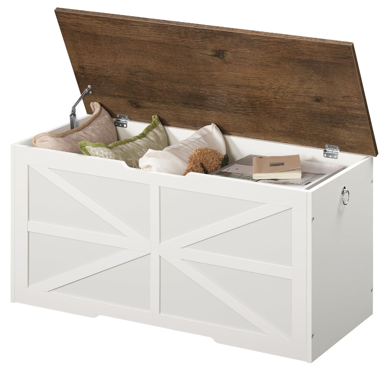 CHOEZON Storage Chest, 39.4" Wooden Storage Trunk, Modern Storage Bench with Safety Hinge, Toy Chest Storage, Farmhouse Style, for Bedroom, Living Room, Walnut and White MCW10WL