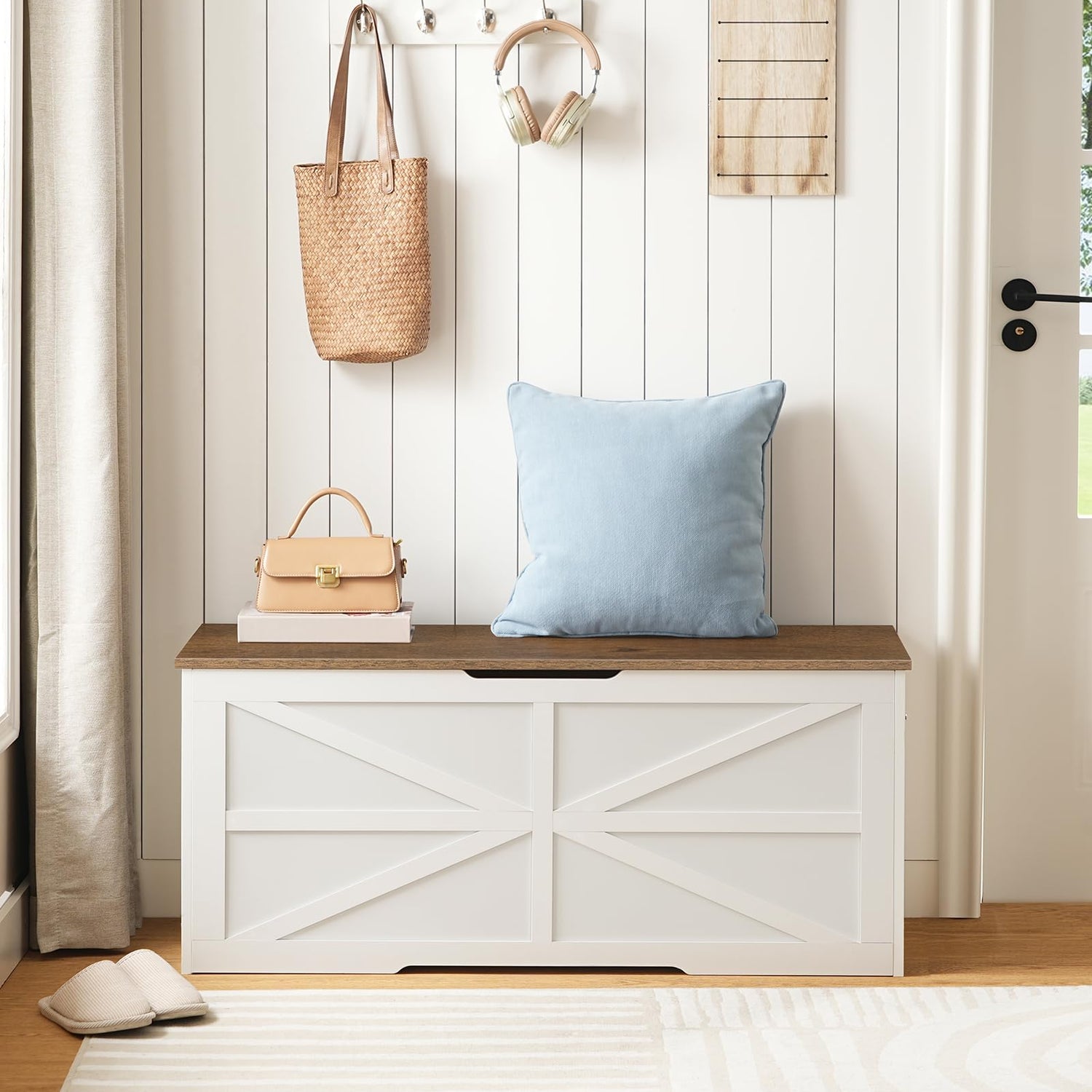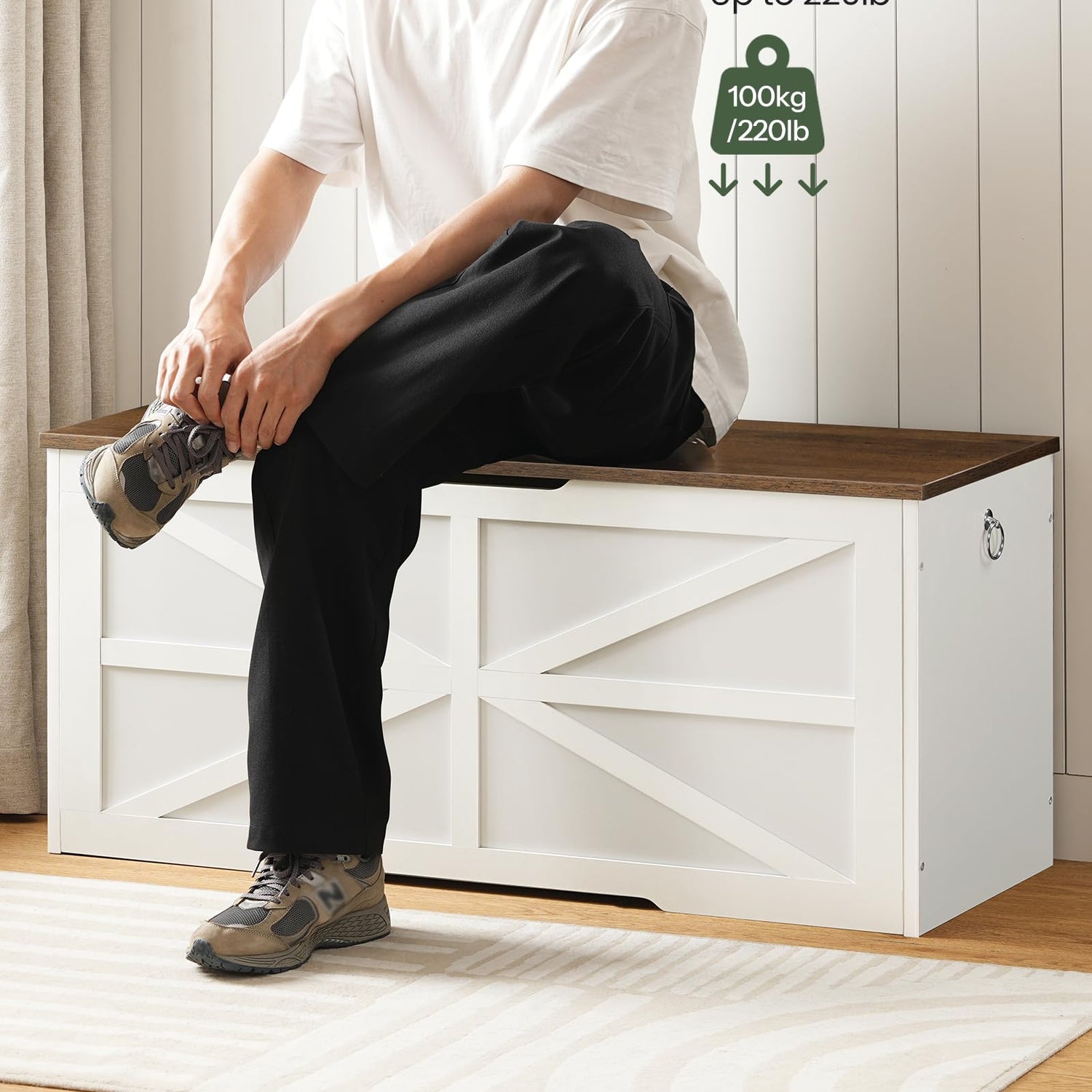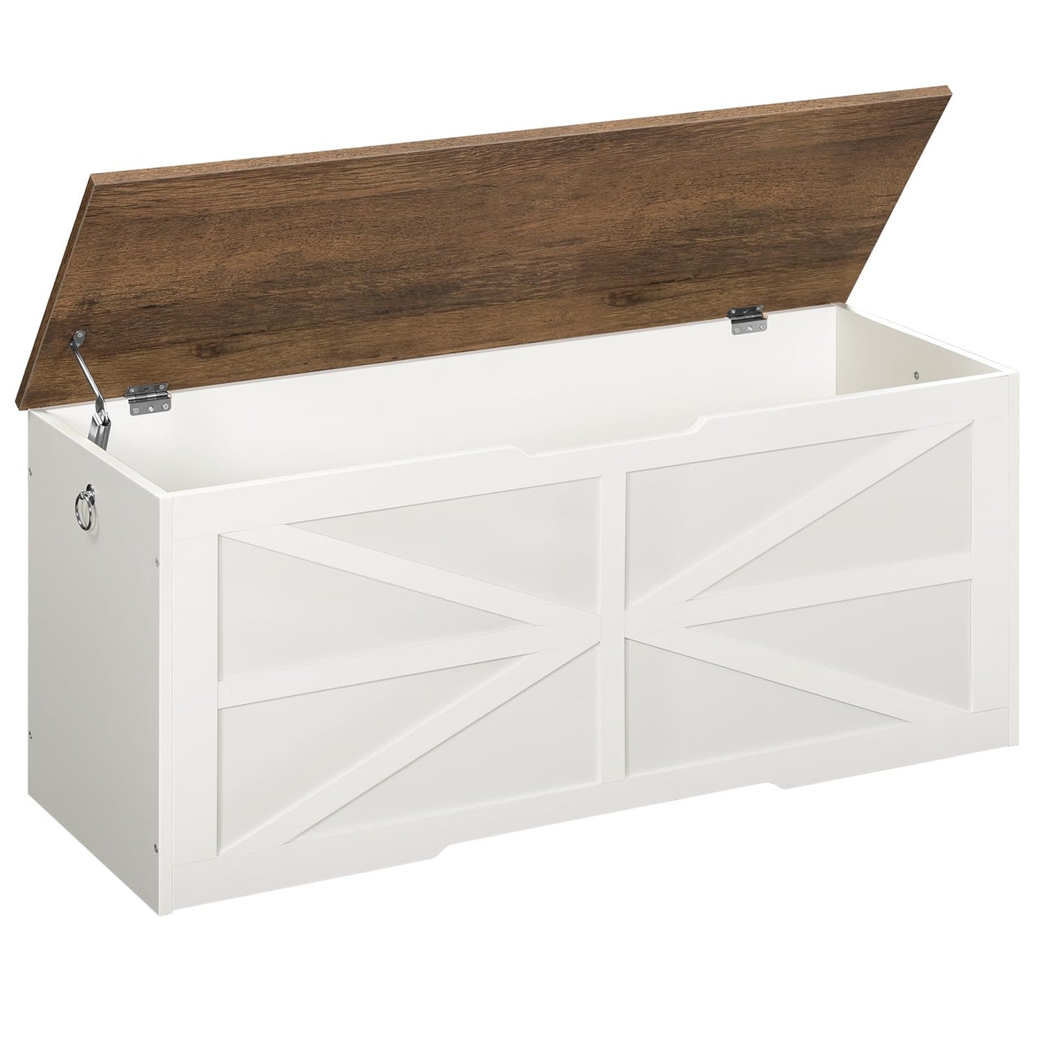 CHOEZON Storage Chest, 43.3" Wooden Storage Trunk, Modern Storage Bench with Safety Hinge, Toy Chest Storage, Farmhouse Style, for Bedroom, Living Room, Walnut and White MCW11WL