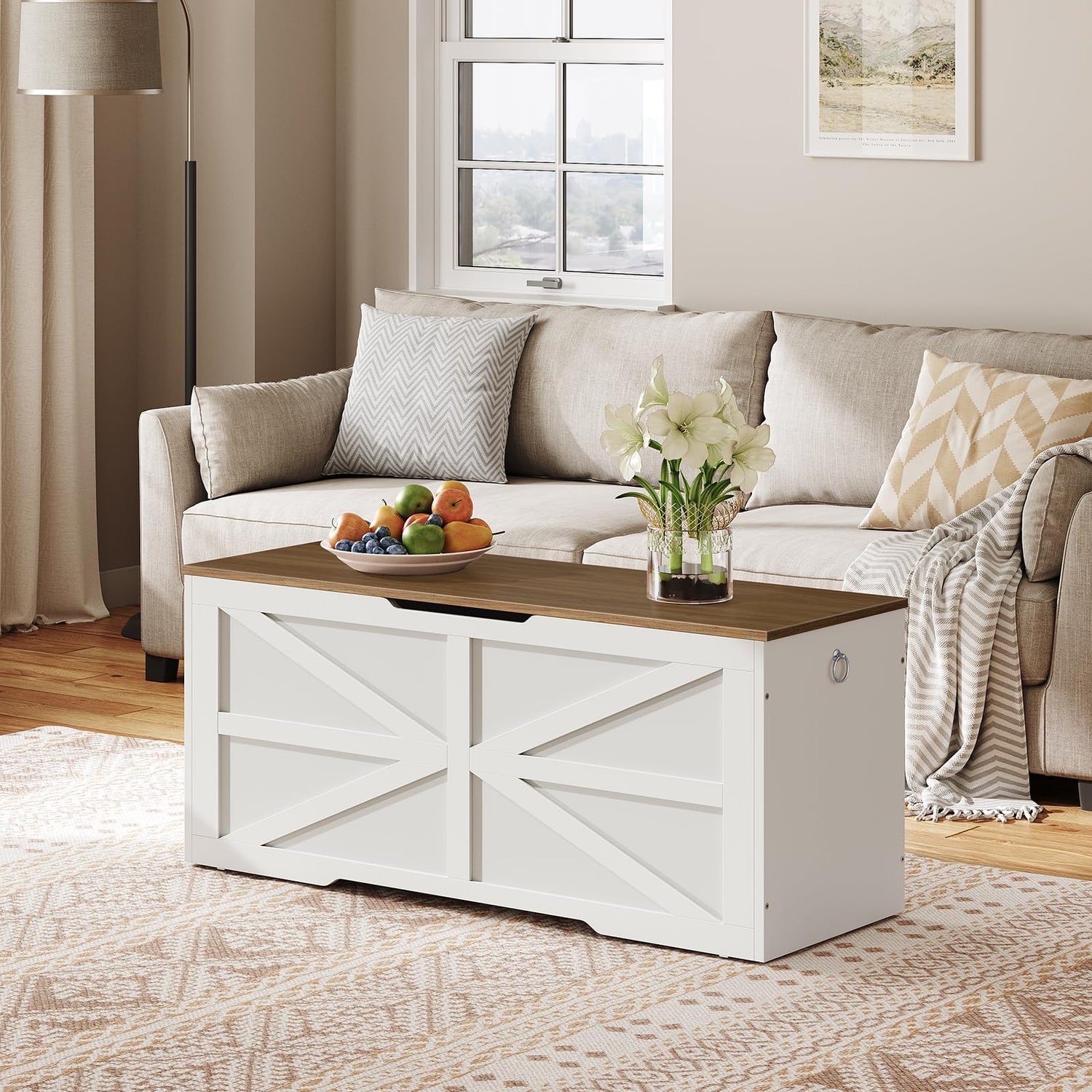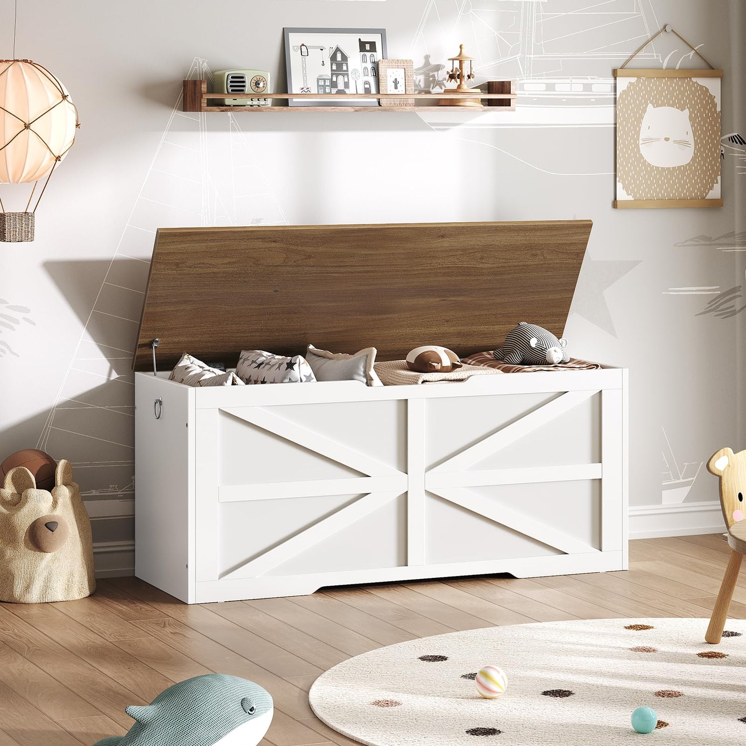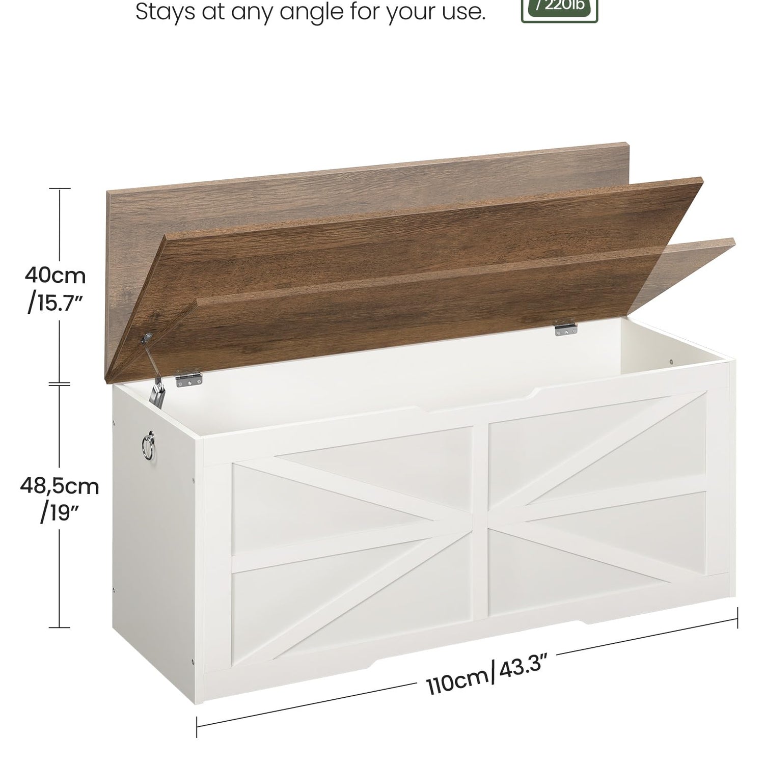 CHOEZON Storage Chest, 43.3" Wooden Storage Trunk, Modern Storage Bench with Safety Hinge, Toy Chest Storage, Farmhouse Style, for Bedroom, Living Room, Walnut and White MCW11WL