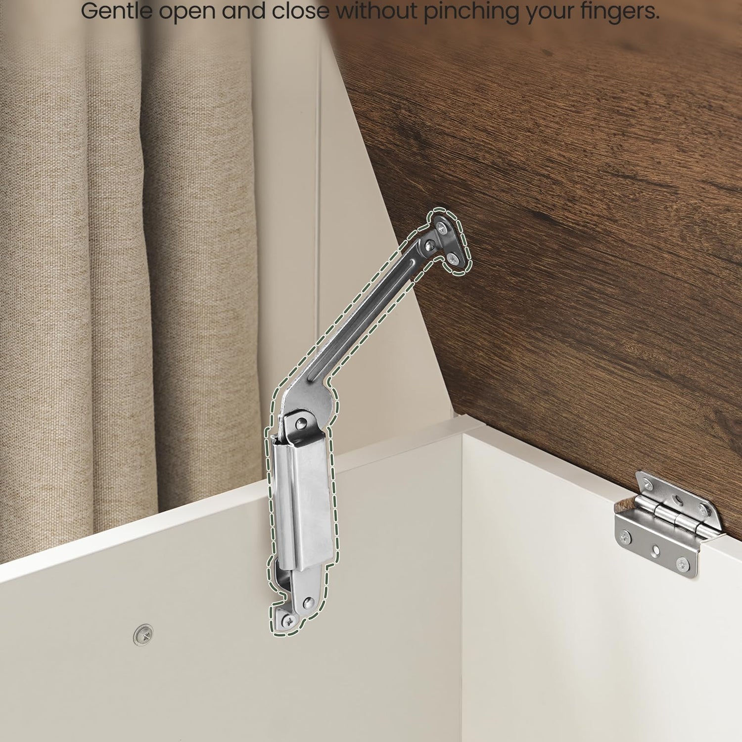 - Sturdy Support and Safety Hinge: Crafted with premium boards and metal fittings, this wooden storage trunk boasts a 220 lb on its top for durability. The safety hinge and U-shaped cutout prevent finger pinching, adding extra protection for your daily use