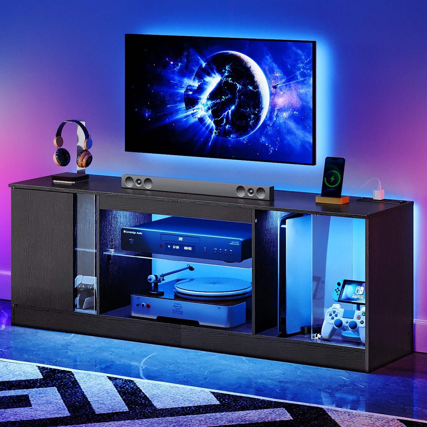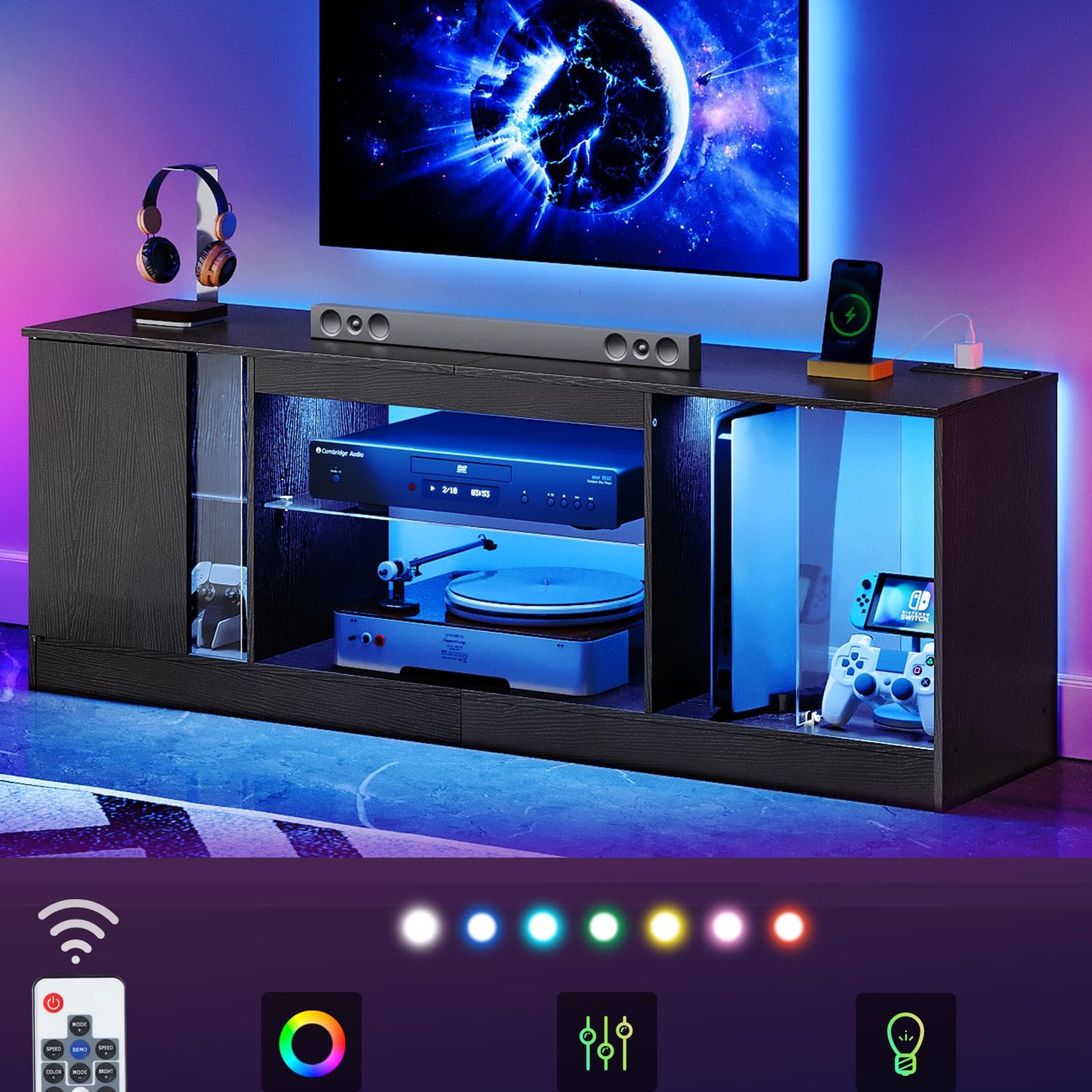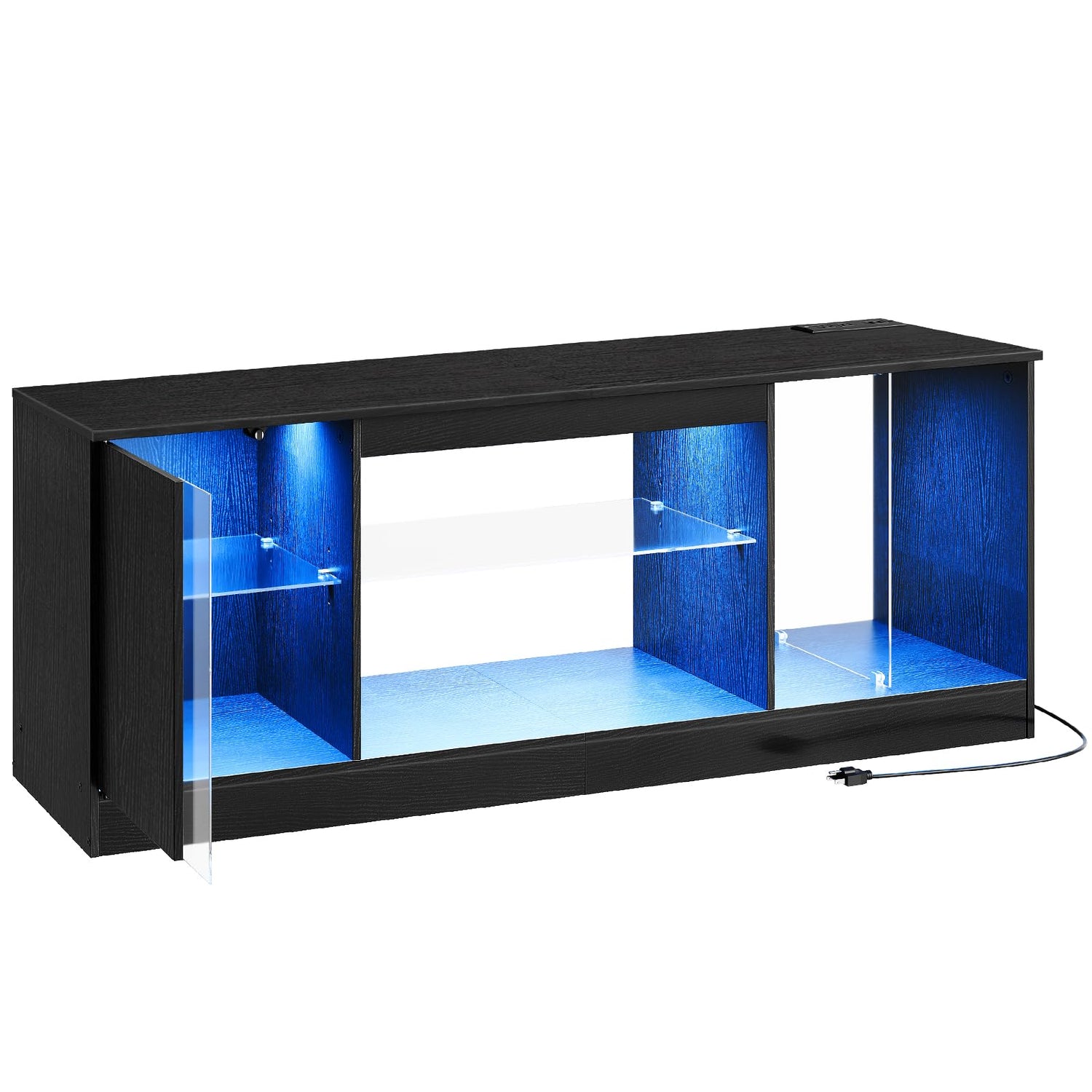 CHOEZON TV Stand with Power Outlets to 55 inch TV, Modern Entertainment Center with Multi-Color LED Light, Media TV Console with Adjustable Glass Shelves for Living Room, Bedroom, Black MDS01UDBB
