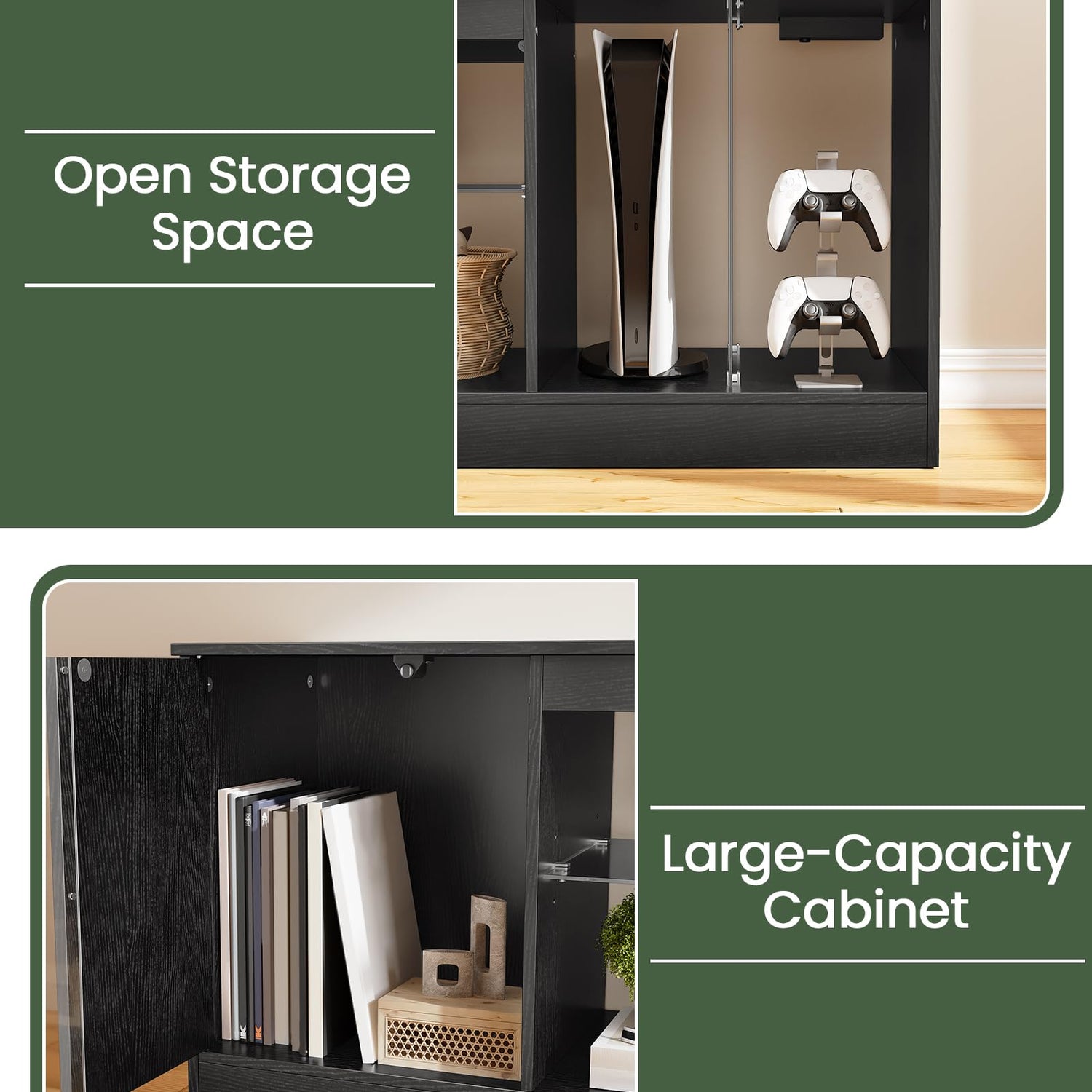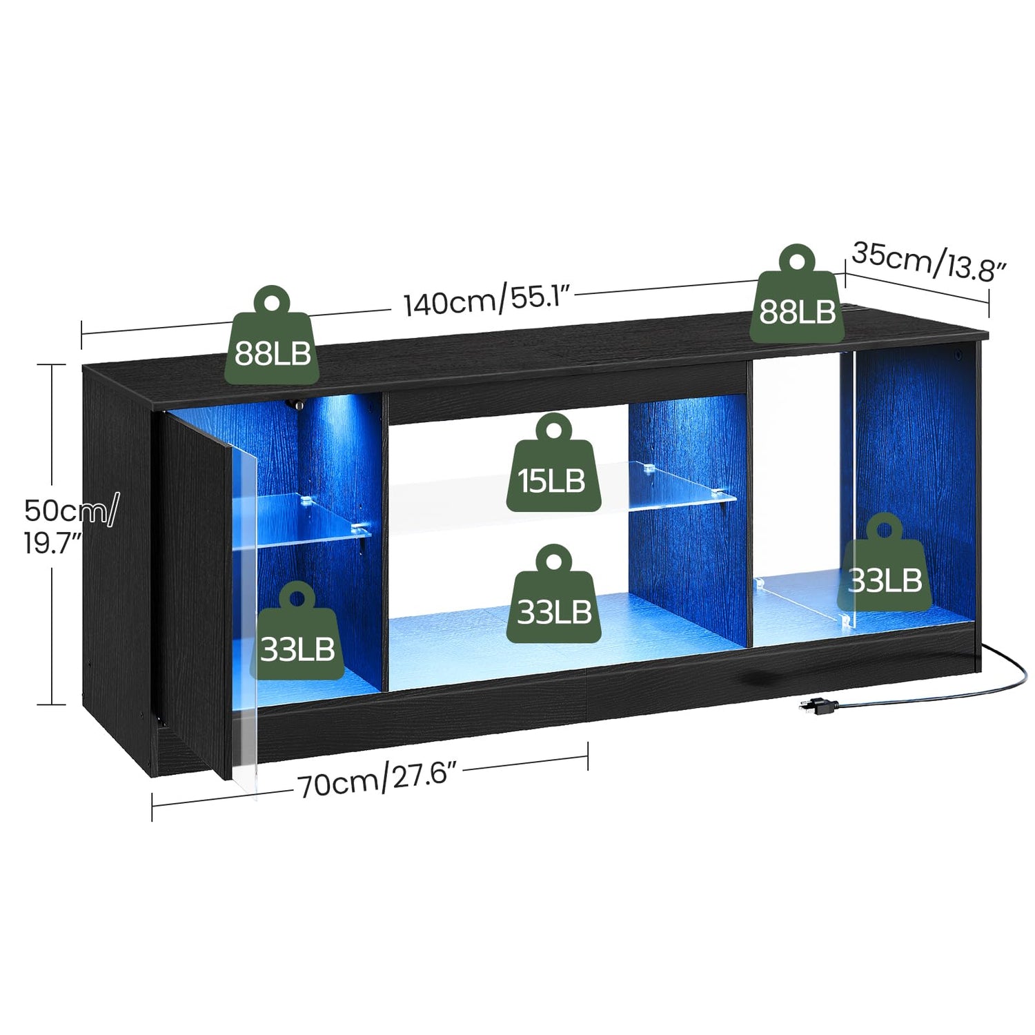 - Adjustable Shelves: The entertainment center with storage measures 55.1"L x 13.8"W x 19.7"H, with both the middle partition and interior shelf of the cabinet features 3 adjustable heights, effortlessly accommodating varying-sized items and maximizing space utilization