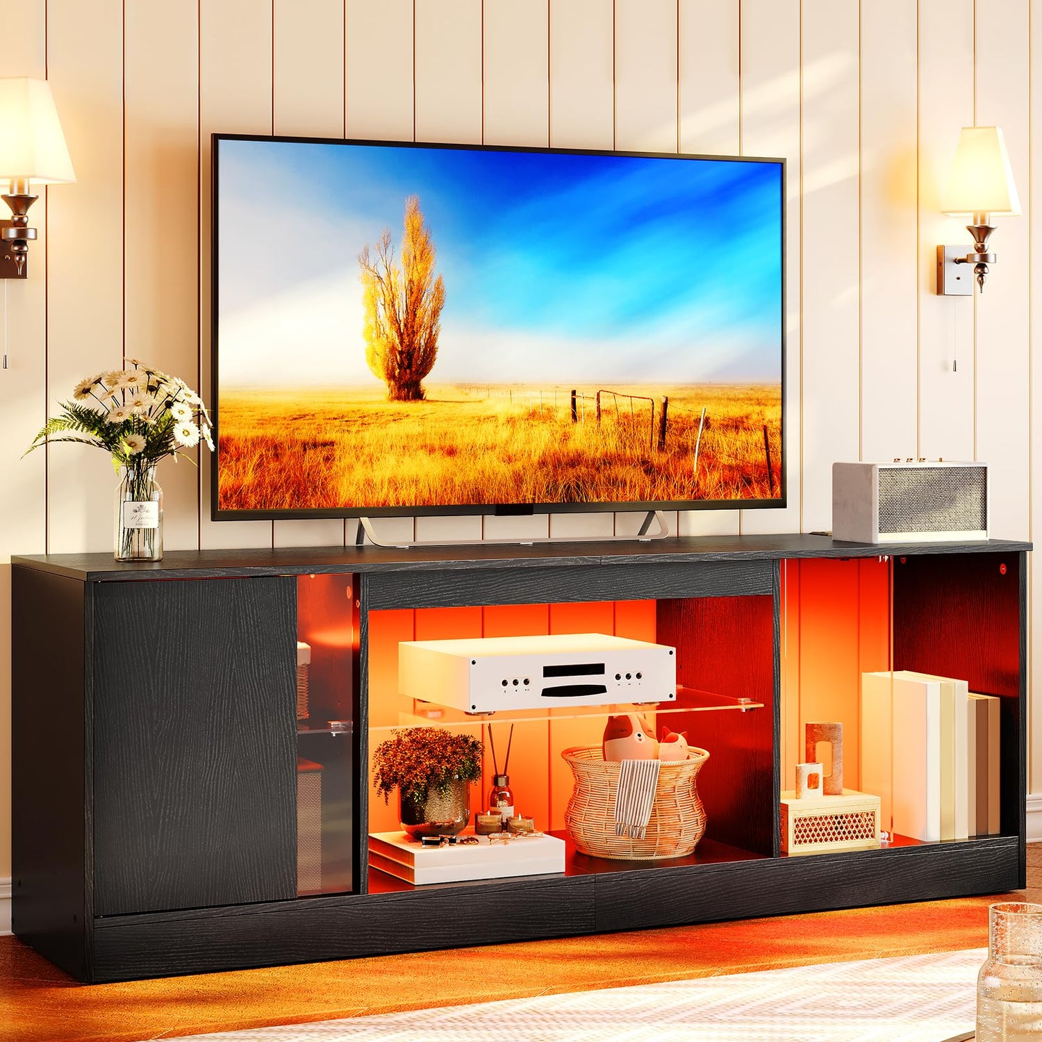 - Colorful LED Lights and Power Outlets: Equipped with an LED strip that offers multiple colors and modes, the TV console with storage enables you to switch at will with the remote control to create romantic, cozy, cool, or vibrant ambiances, adding a touch of brightness to your home