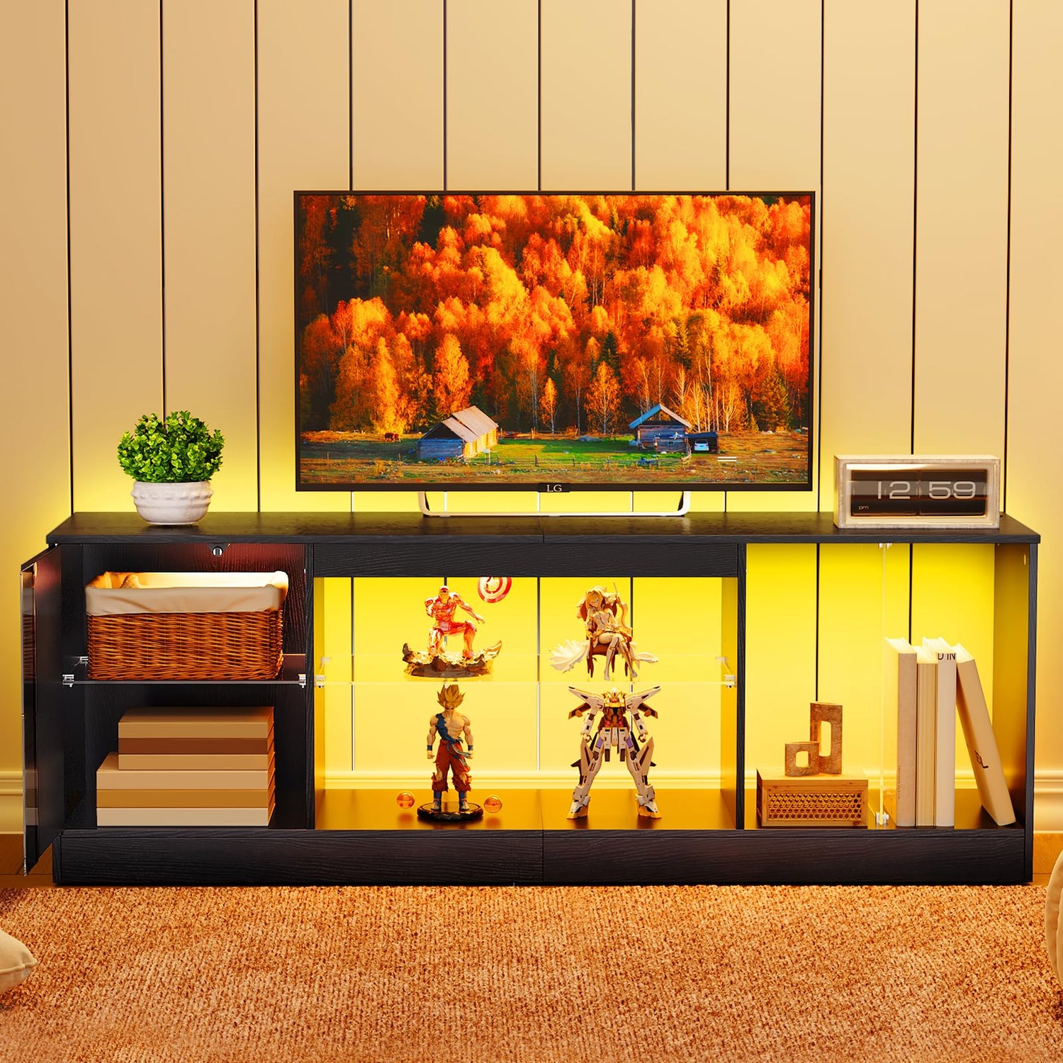 - Modern Aesthetic Style: With fashion design concepts, this media console cabinet combines translucent doors with side tempered glass partitions, displaying the contents inside the cabinet while highlighting a stylish and unique charm to your space