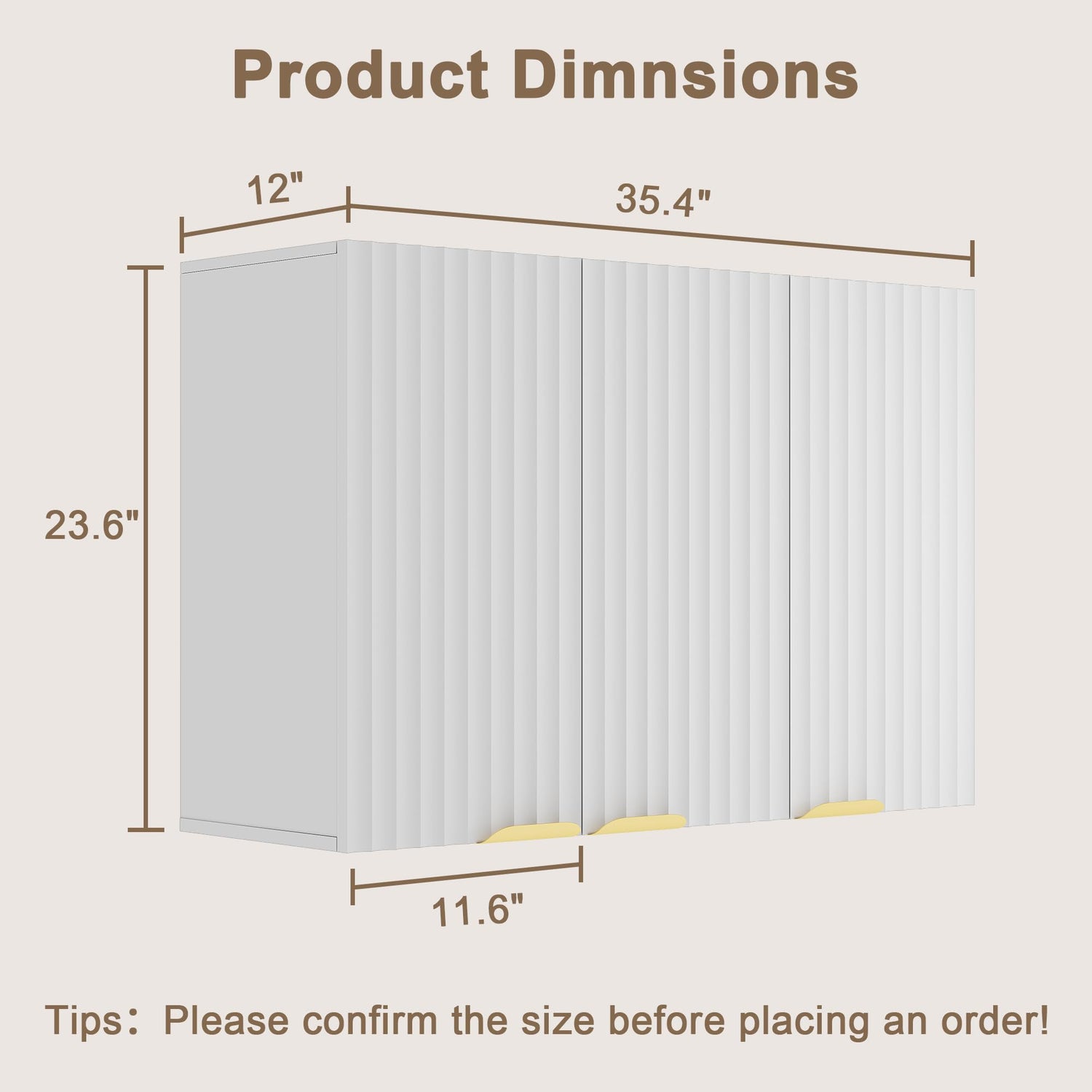 - 【Maximize Your Storage Space】Measuring 11.81"D x 35.43" W x 23.62"H, this wall-mounted cabinet offers extra-wide and deep storage compared to standard wall cabinets. Easily stores large bottles, towels, cleaning supplies, or kitchenware—perfect for maximizing space in any room